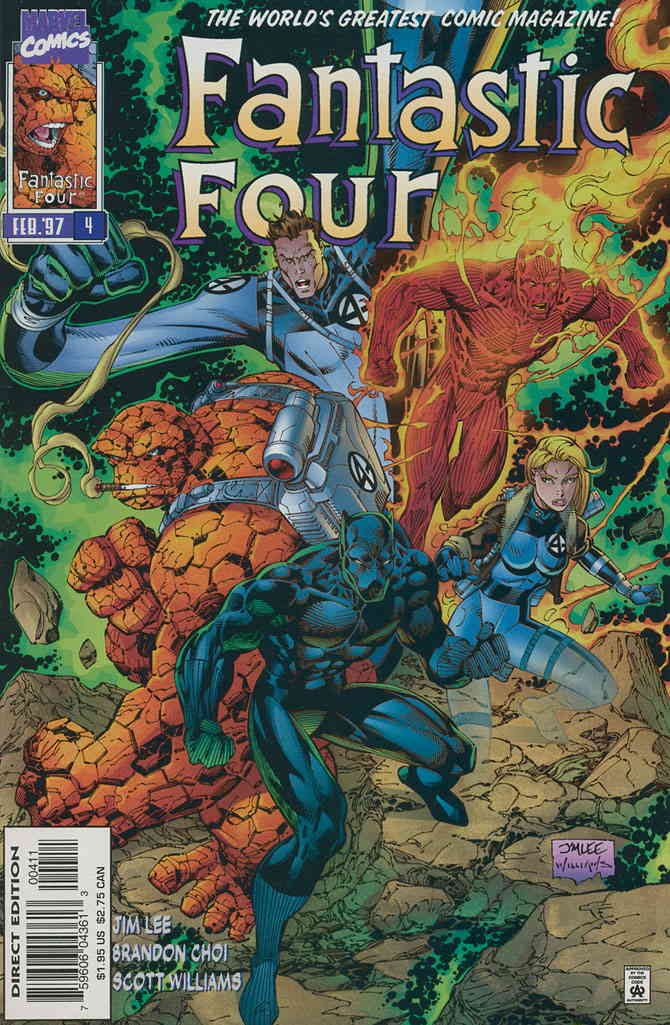 Item: Fantastic Four (Vol. 2) #4 | Publisher: Marvel | Cover Date: February 1997 | Writer: Brandon Choi, Jim Lee | Artist: Jim Lee | Cover Artist: Jim Lee | Appearances: Black Panther | Storylines: The Heart Of Darkness | Notes: AKA Fantastic Four Vol. 1; #420 | With Economy shipping, each additional comic ships for just 50 cents more to customers in the USA. This listing contains a stock photo and information from ComicBase™ and © Human Computing. The stock photo is for reference only. If you would like to see a photo of the actual item, please message us prior to purchasing.Seller Information