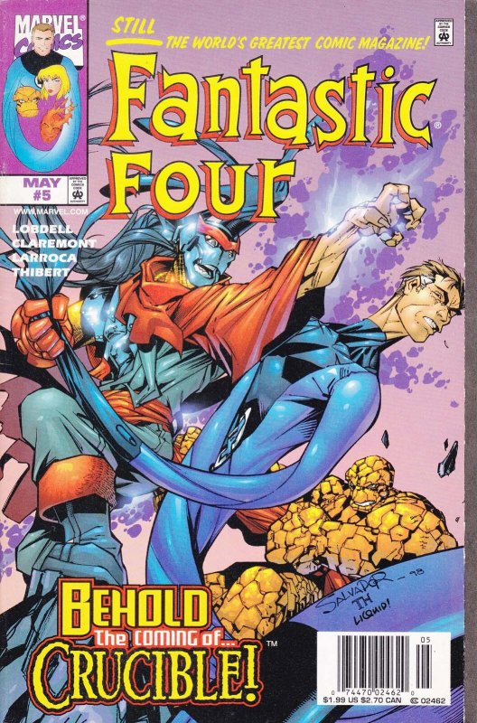 Item: Fantastic Four (Vol. 3) #5 (Newsstand) | Publisher: Marvel | Cover Date: May 1998 | Writer: Scott Lobdell, Chris Claremont | Artist: Salvador Larroca | Cover Artist: Salvador Larroca | Appearances: Alyssa Moy, ... Read More