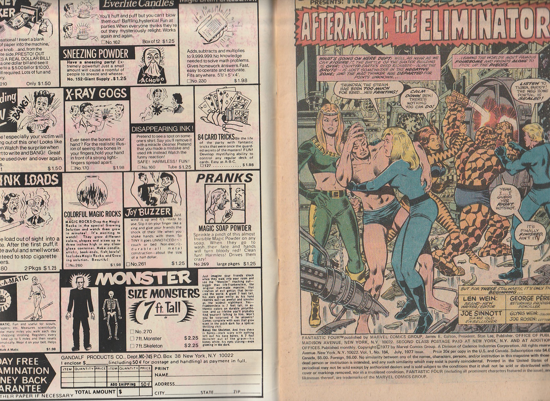 A supernatural combination of man and machine is positioned to destroy the Fantastic Four as they visit Agatha Harkness. Swamp Thing co creator, writer Len Wein provides story while Crisis On Infinite Earths/New teen Titans/Avengers artist, George Perez and Avengers/Fantastic Four artist, Joe Sinnott provide pictures
