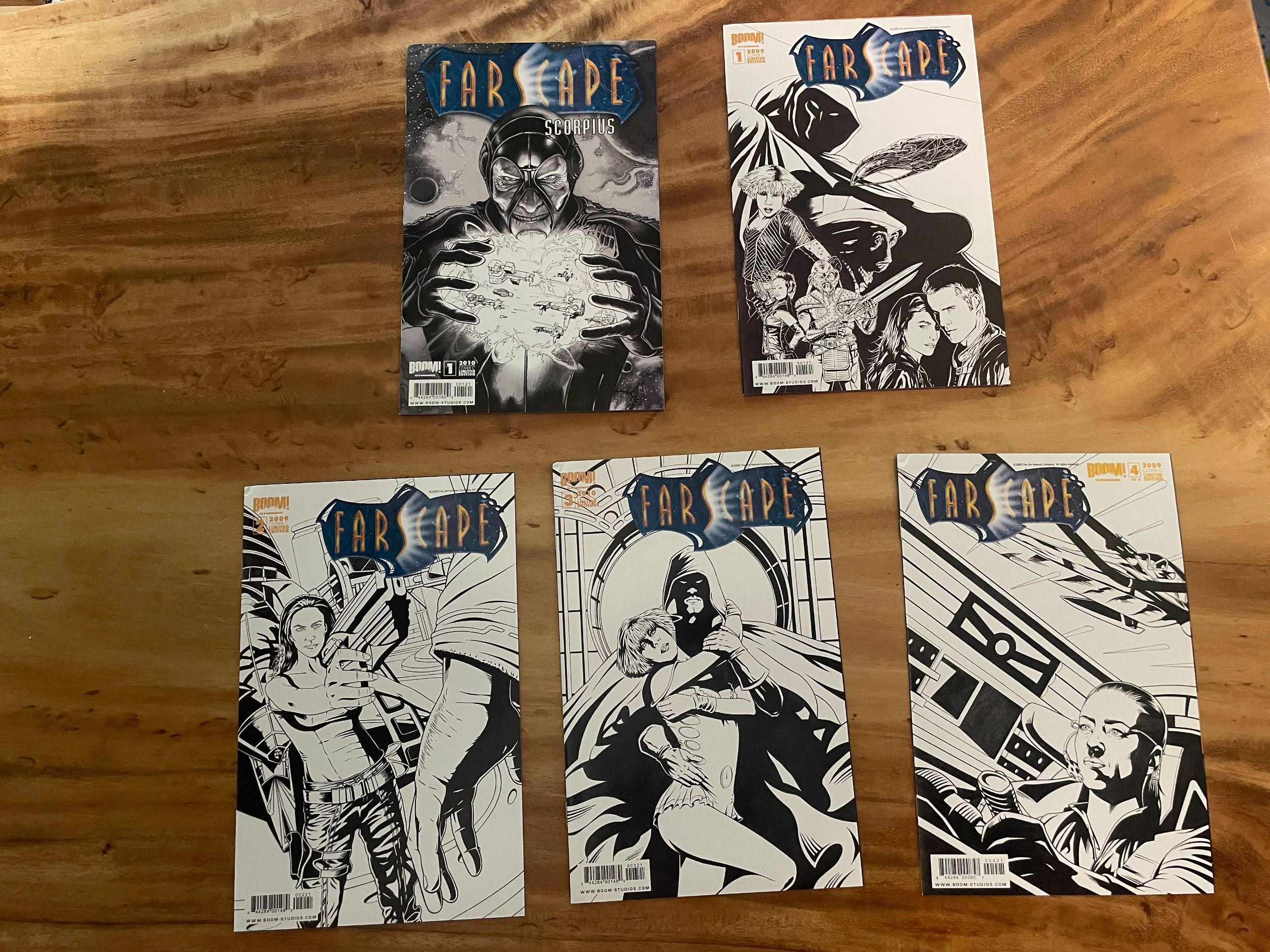 Farscape Comic Lot 13 B&W Variants 1 2 3 4. Most have corner dings on top right front and some light spine ticks, but all present quite well and these 1:10 variants are kinda rare.Farscape TPB War For Uncharted Territories Part One 1 Henson Boom. Has some general wear, corner fold on top front right, the cover also doesn't close (see pics), presents well, see pics for grade.