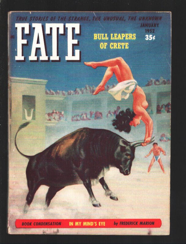 FATE Issue: / Year: January 1952 Condition: FN-Bare breasted woman-Good Girl Art cover -Bull Leapers of Crete -Flying Saucers-Nostradamus-dreams -Rare digest format pulp magazine features Strange, Unusual and Unknown stories. -Pulp thrills -High grade Publisher: ClarkSku: EB-31-032 Over 100,000 mail orders processed! Buy with confidence. Track Page Views WithAuctiva's Counter