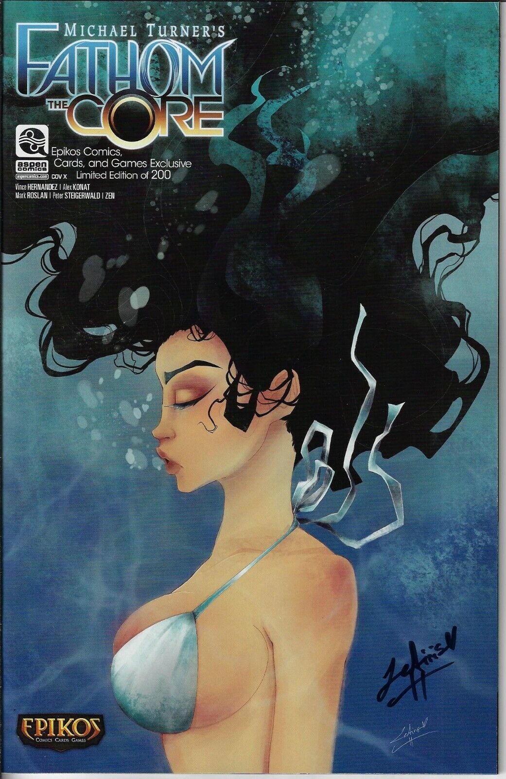 Grade: 9.2 Near Mint- Item Information: MICHAEL TURNER'S FATHOM CORE #1 EPIKOS STORE EXCLUSIVE SIGNED BY LEAIRIS CROSS VARIANT ASPEN 2021 EB203ASPEN MLT INC(W) Vince Hernandez (A) Mark Roslan, Alex Konat (CA) Leair ... Read More