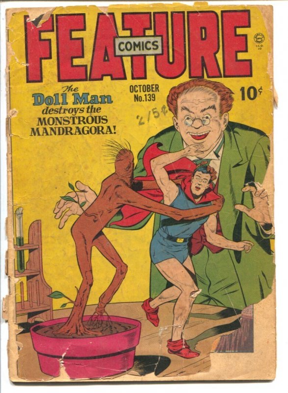 Grade: PFeature Comics #139 1947- Quality-DOLL MAN-Groot prototype-P -Doll Man cover. Groot prototype -Low grade, complete but beat -Covers loose Grade: P SKU: EA-22-067