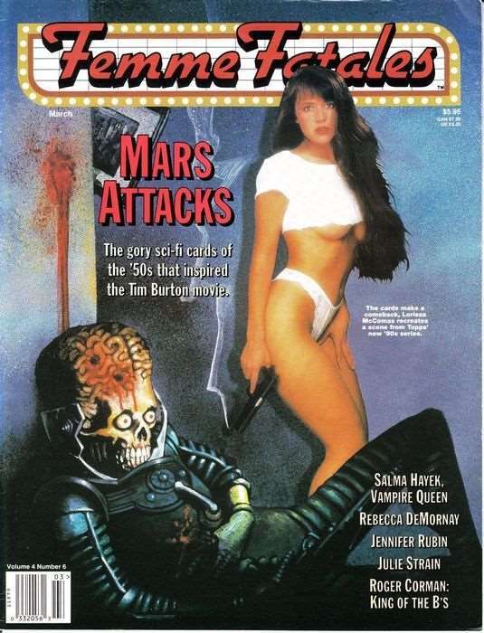 Item: Femme Fatales (vol. 4) #6 | Publisher: Clarke | Cover Date: March 1996 | Notes: Mars Attacks; Rebecca DeMornay, Kerri Hoskins, Jennifer Rubin, Salma Hayek | With Economy shipping, each additional comic ships f ... Read More