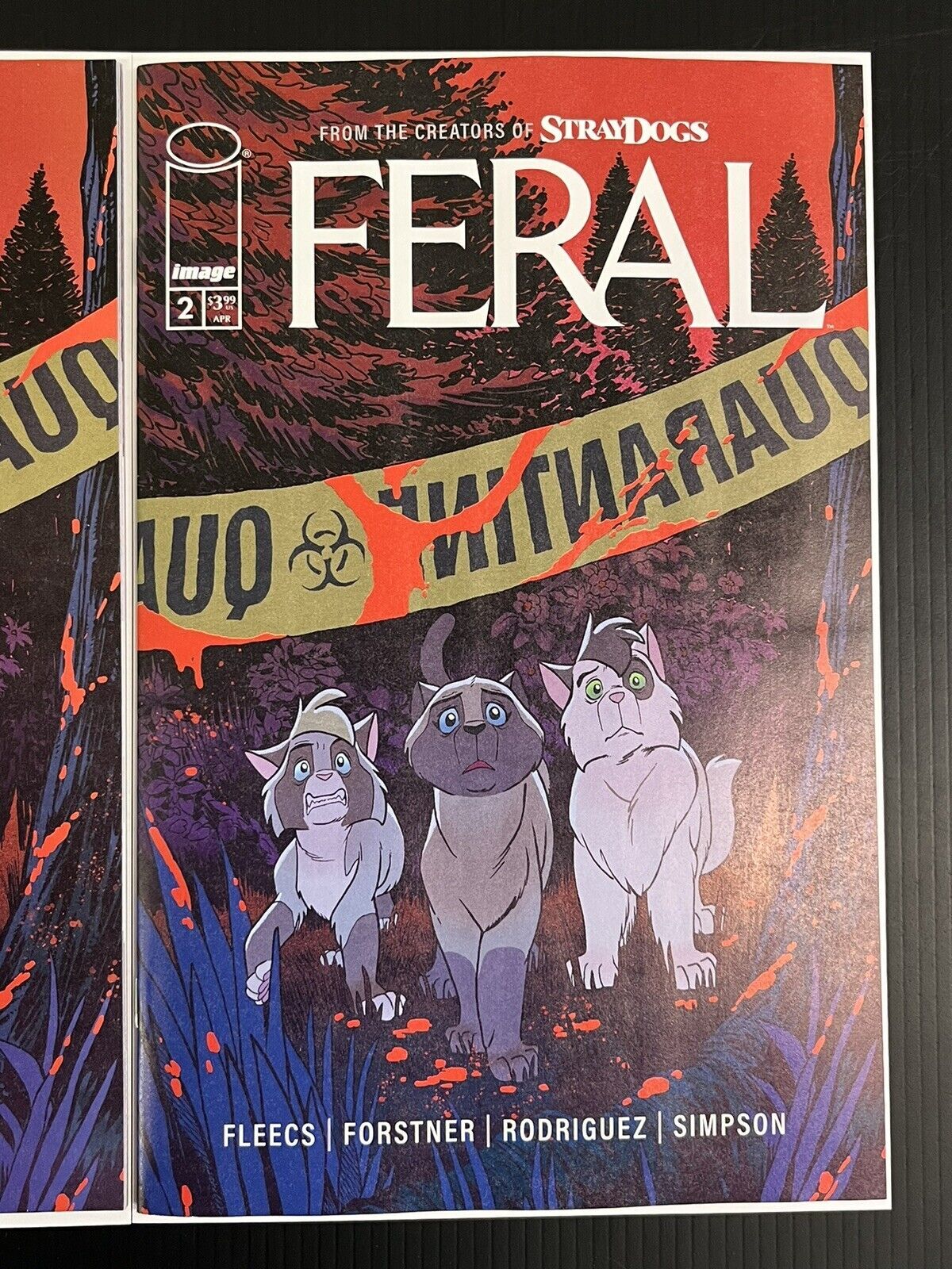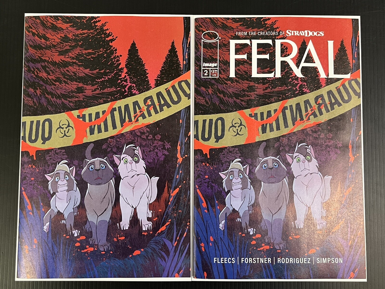 FERAL #2 CVR A + C 1:10 FLEECS & FORSTNER (Set of 2)IMAGE COMICS BUY-SELL(W) Tony Fleecs (A) Trish Forstner, Tone Rodriguez (CA) Trish Forster, Tony FleecsMORE ANIMAL HORROR FROM THE CREATORS OF STRAY DOGS!The indoor cats, still searching for their home in the rabies-infected woods, find others just like them on the run! But can these new cats be trusted? Are they good kitties, or are they THE BAD KIND?!? Don't get bit. Don't get scratched. Don't become... FERAL.*****Thank you for taking a look at our PRESALE listing!***** Please consider exploring our store as we are adding new items almost daily!All PRESALE listings (as noted in the title) are pre-orders for items that have a future release date (also noted in the title). Our process for recording this sale, receiving the items, packing, shipping and tracking is as follows:After payment on a PRESALE item is received we first confirm your order with you and temporarily mark it "shipped".The item(s) should arrive to us on or near the date in the title of this listing. Once the item(s) arrive we take time to inspect them for defects, (particularly, any damage that would bring the grade down below NEAR MINT), and will notify you before shipping if anything is found. A full refund is always an option for any PRESALE items that arrive to us damaged.Our biggest strength as a seller is our pack-&-ship process:All comics are individually bagged and boarded.Single comics are inserted into a tyvek mailer and then a bubble-wrap envelope.Paired comics are bundled together in an extra mylar bag and inserted directly into a bubble-wrap envelope.Envelopes are expertly packed inside a tri-fold Diamond comic mailer and a shipping label is affixed.Tracking is automatically uploaded to the order once the shipping label is created.Please feel free to reach out with any further questions about our process, listings or items!Seller Information