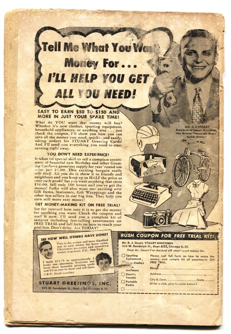 Grade: G- Fight Against Crime #19 1954- Violent cover- Horror- Terror G- Torture cover. Man has face smashed into broken bottle. Bloody splash panel, horror violent behavior. Extra staples, low grade copy, beat but ... Read More