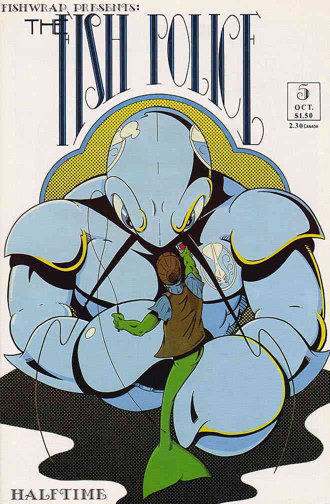 Item: Fish Police (Vol. 1) #5 | Publisher: Fishwrap | Cover Date: October 1986 | Writer: Steve Moncuse | Artist: Steve Moncuse, Arthur Adams | Storylines: Halftime | Notes: Indicia says Aug 1986; Inside back cover b ... Read More