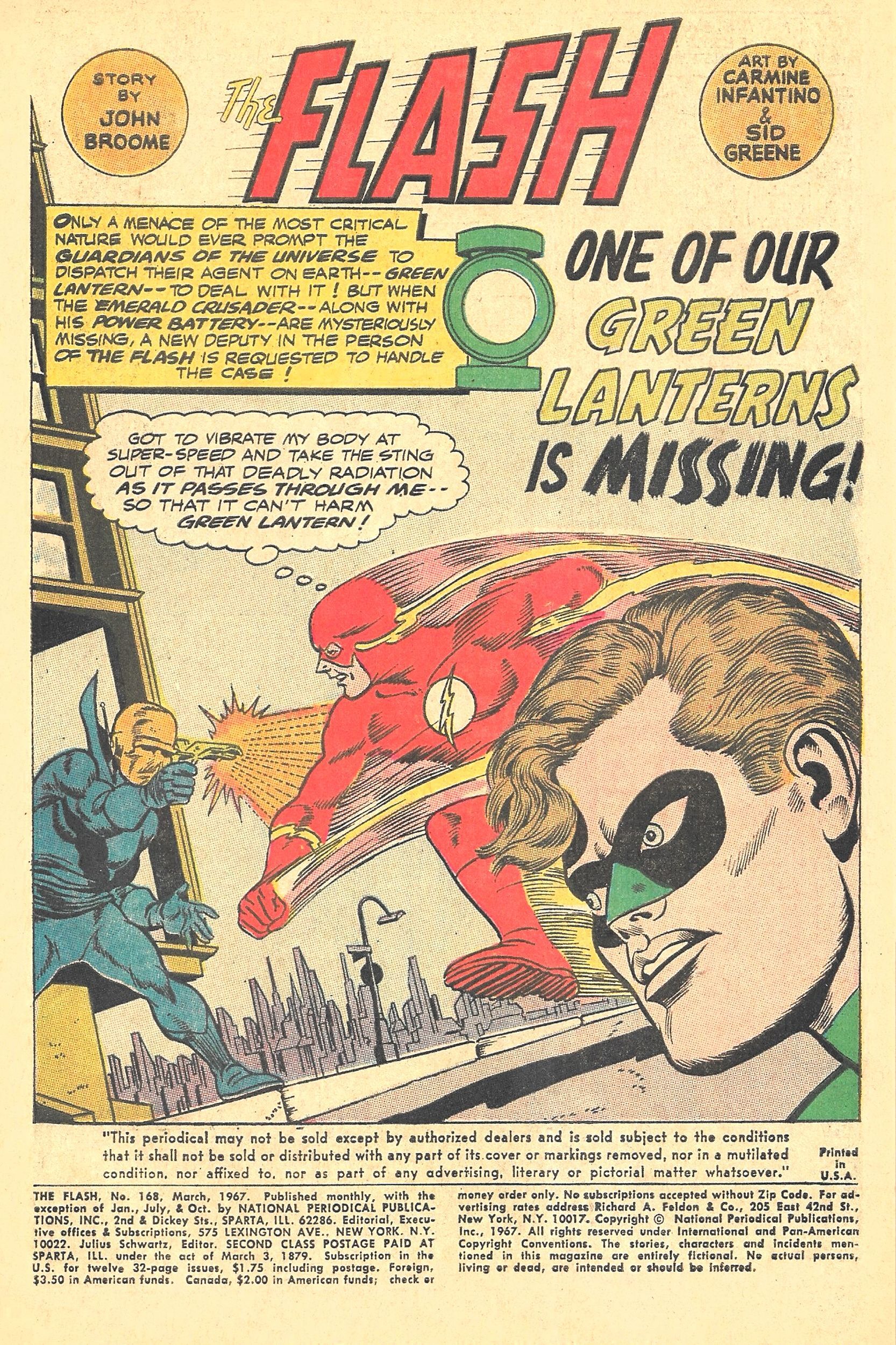 FLASH #168 (Mar'67) 8.0 VF John Broome! Carmine Infantino! 3rd GL appr i...
