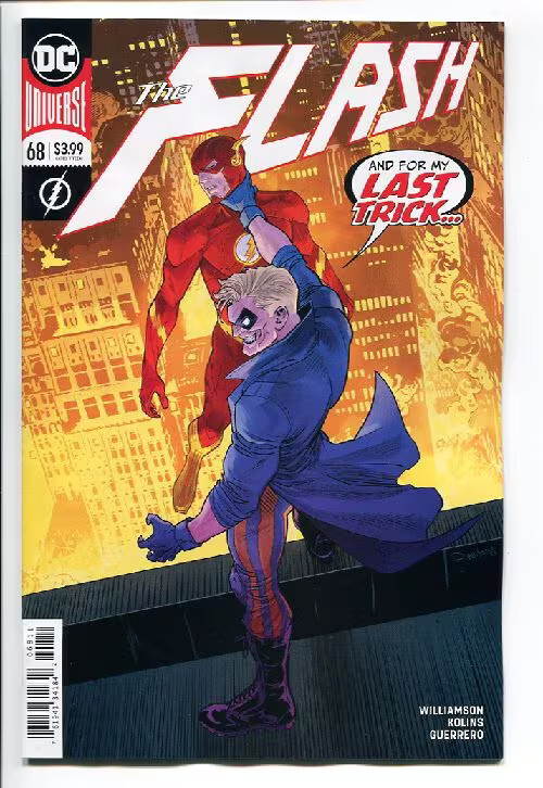 Grade: 9.2 Near Mint-FLASH (2016 DC) #68 CVR A DAN MORA Item Number: CXWH-R15911 The Flash has arrived back in his home of Central City to discover something�off. The people are all acting strangely, including his friends and colleagues-but before Barry can figure out why, the entire Central City PD attacks! At last the great trick is revealed: the Trickster now rules supreme! With Iron Heights as his fun-house base of operations, Trickster plunges the entire city into madness-and the Flash is powerless to save them!
