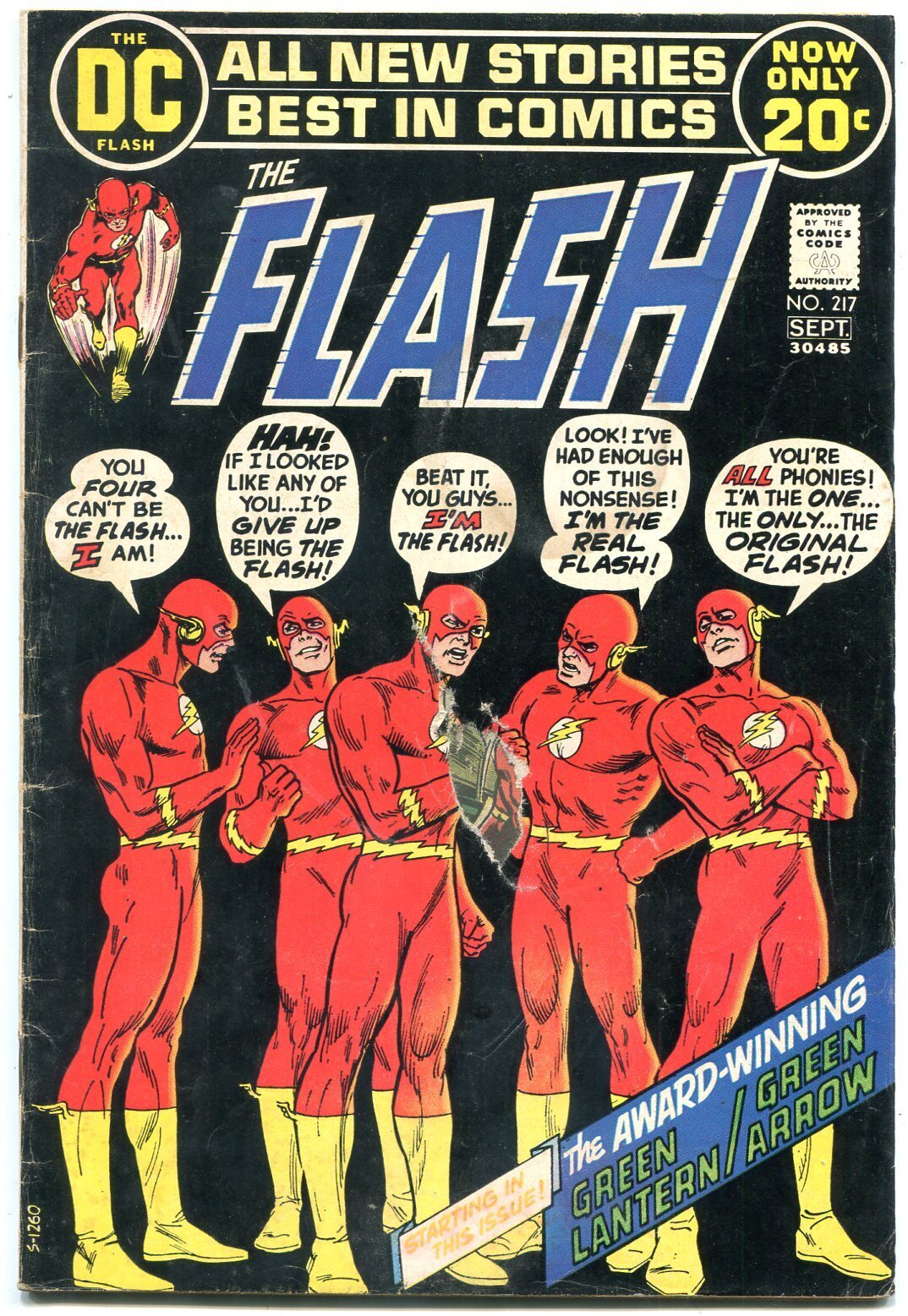 Flash #217 1972-DC-Green Lantern & Green Arrow series-NEAL ADAMS- G -Green Lantern and Green Arrow series starts in this issue. -Neal Adams art. -Piece missing from middle of front cover. Title: Flash Issue: 217 Gra ... Read More