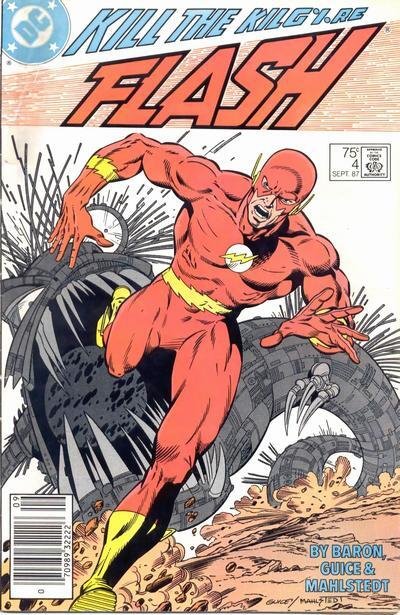 Item: Flash (2nd Series) #4 (Newsstand) | Publisher: DC | Cover Date: September 1987 | Writer: Mike Baron | Artist: Butch Guice | Cover Artist: Butch Guice | Appearances: Cyborg, Kilg%re, Flash (Wally West) | Storylines: Kill the Kilg%re! | Notes: Versus Kilg%re; newsstand edition | With Economy shipping, each additional comic ships for just 50 cents more to customers in the USA. This listing contains a stock photo and information from ComicBase™ and © Human Computing. The stock photo is for reference only. If you would like to see a photo of the actual item, please message us prior to purchasing.Seller Information