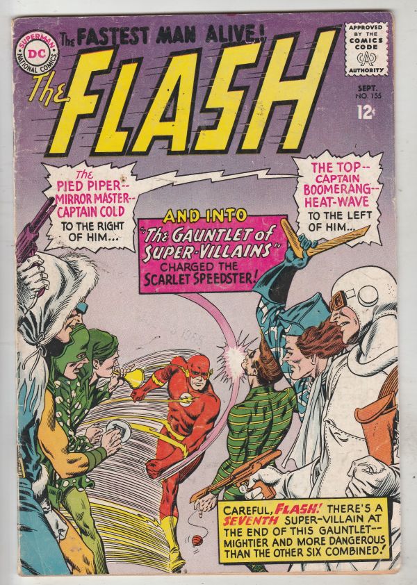 Flash, The #155 - And Into "The Gauntlet of Super-Villains"COVER - The Gauntlet of Villians (Captain Cold, Heatwave, Boomerang, the Top, Pied Piper, Mirror Master) cover story!