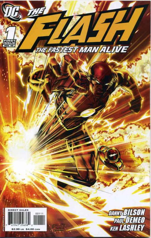 Item: Flash: The Fastest Man Alive #1 | Publisher: DC | Cover Date: August 2006 | Writer: Danny Bilson, Paul Demeo | Artist: Ken Lashley | Cover Artist: Ken Lashley | Appearances: Flash, Kid Flash II, Griffin, Valerie Perez, Tina McGee | Storylines: Lightning in a Bottle, Part 1; Flashback | Notes: 1st Appearance of Griffin; 1st Appearance of Valerie Perez | With Economy shipping, each additional comic ships for just 50 cents more to customers in the USA. This listing contains a stock photo and information from ComicBase™ and © Human Computing. The stock photo is for reference only. If you would like to see a photo of the actual item, please message us prior to purchasing.Seller Information