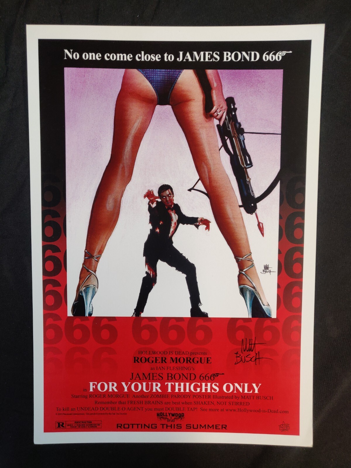 Condition: This print was part of Matt Busch's "Hollywood is Dead" project. For Your Thighs Only - James Bond Parody Movie Poster SIGNED by Matt BuschSize: 13" x 19"This item was uploaded by ___OR___. If you have ... Read More