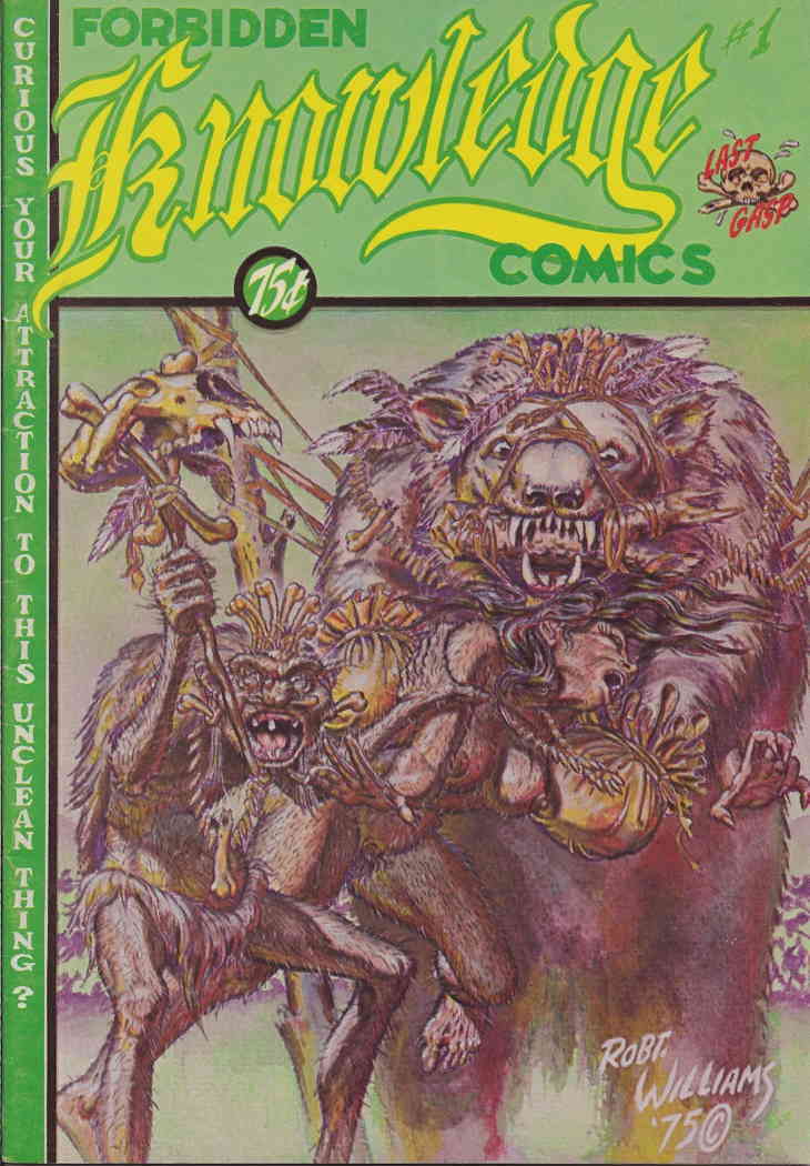 Item: Forbidden Knowledge #1 | Publisher: Last Gasp | Cover Date: January 1975 | Writer: Art Vitello, Brent Boates, Chris Lane, Dennis Ellison, George Di Caprio, Jim Himes, Matt Golden, Milt Gray, Rich Chidlaw | Artist: Art Vitello, Brent Boates, Chris Lane, Dennis Ellison, George Di Caprio, Jim Himes, Matt Golden, Milt Gray, Rich Chidlaw | Cover Artist: Robert Williams | Storylines: The Notorious Hell-Fire-Club; Alcibiades The Phalos Smasher; Stars of The Roman Coliseum; Plague of Treponema Pallidum!; Blood Lust of The Tupinamba; A Most Unusual Way to… | Notes: B&W | With Economy shipping, each additional comic ships for just 50 cents more to customers in the USA. This listing contains a stock photo and information from ComicBase™ and © Human Computing. The stock photo is for reference only. If you would like to see a photo of the actual item, please message us prior to purchasing.Seller Information