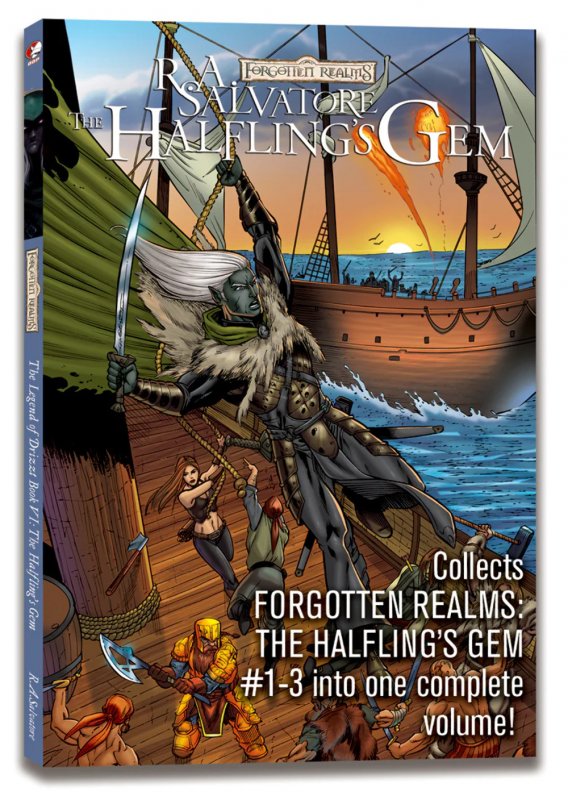 Forgotten realms dark elf tp vol 06 halflings gemAuthor: r.A. Salvatore adapted by: andrew dabb artist: tim seeley cover artist: jeremy roberts it's taken drizzt years to find deep, abiding friendship - and it's taken artemis entreri moments to take it away from him! Drizzt's friend regis has been kidnapped and guenhwyvar - drizzt's most trusted and loyal companion - has been stolen. The quest to rescue them spans thousands of miles, contains endless shocks and surprises and more danger than one dark elf can hope to survive! The stunning saga of drizzt continues here! Collects forgotten realms: the halfling's gem #1-3 into one complete volume!