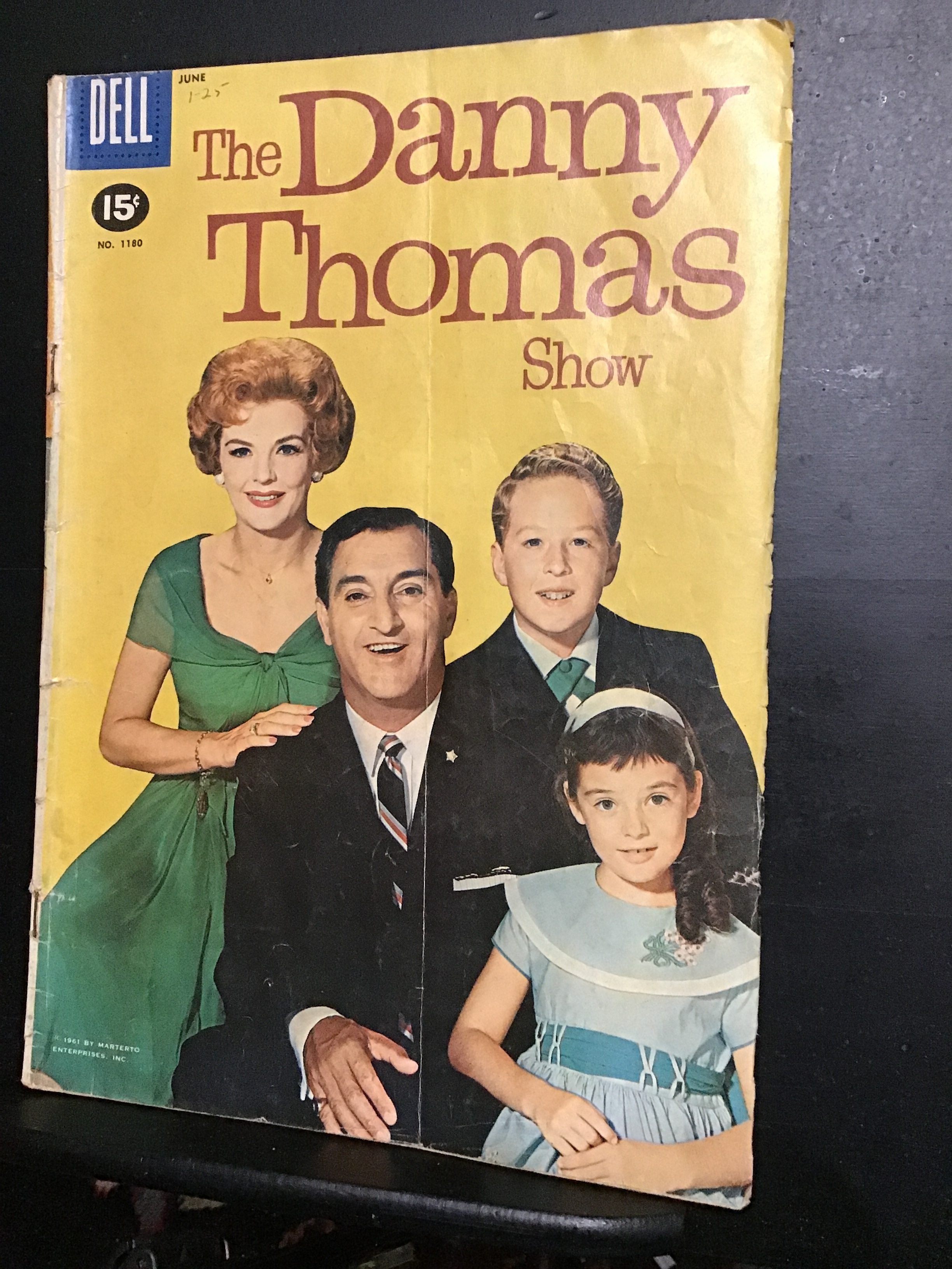 Four Color #1180 (1961) This book has deep rich color and decent eye-appeal on this all-time classic Danny Thomas family photo cover! With cream/slight heavy cream tint pages and inside covers. The book is well atta ... Read More