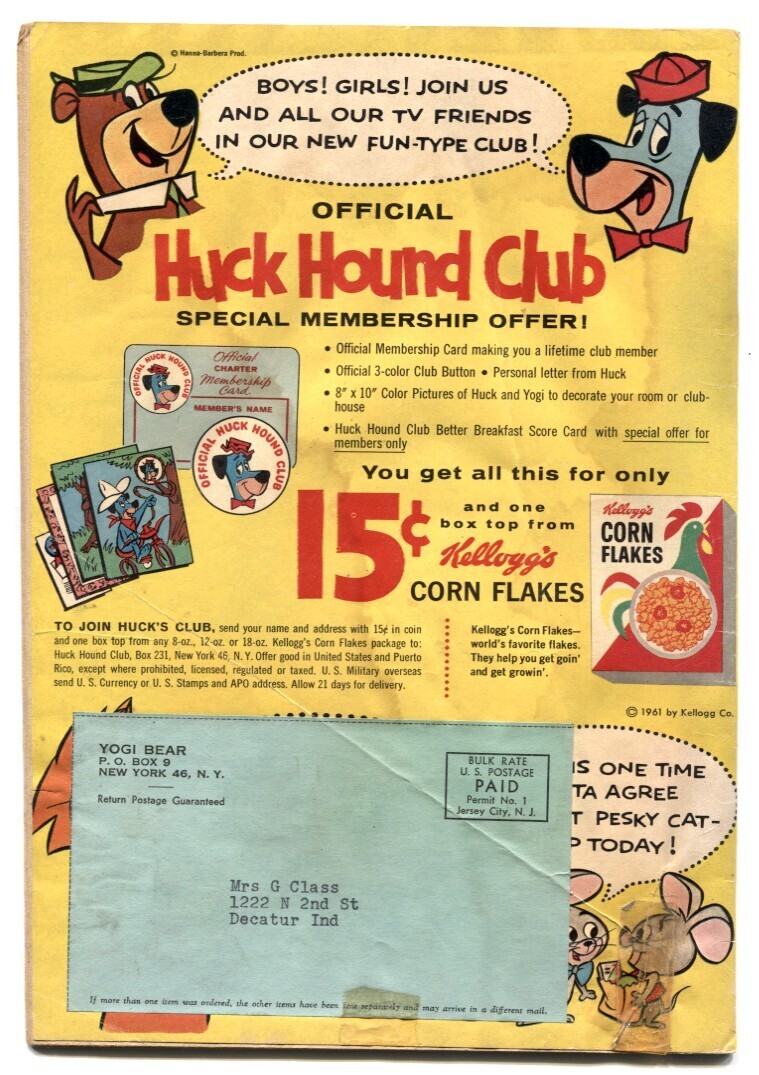 Grade: FR/GYogi Bear Birthday Party -Four Color Comics #1271- F/G Yogi Bear Birthday Party. Light staining. Label attached to back cover. Grade: FR/G SKU: CK52-192