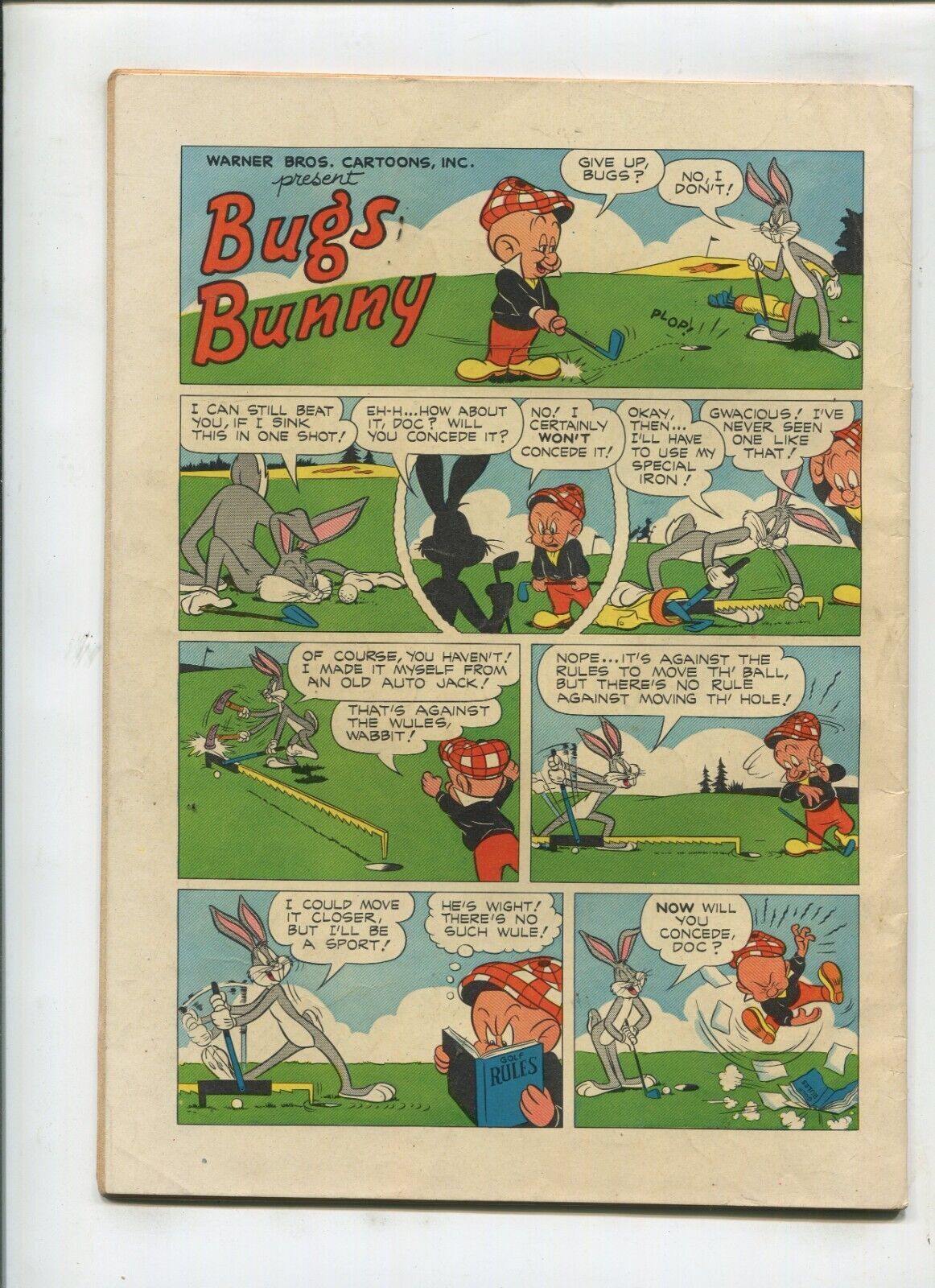 Grade: 4.0 Very GoodFOUR COLOR #347 (4.0) BUGS BUNNY!! 1951Size: 7" x 10"This item was uploaded by Ale (LS).WE COMBINE SHIPPING!!! Either wait for us to send you an invoice after you commit to buy or, if it makes you pay right away, message us back and we'll refund the excess charge. Buy as many single comic books as you want for one low flat shipping rate in the United States! International will be charged exact according to size and weight. If you have any specific questions or requests, please ask us prior to ordering and we'll get back to you as soon as we can. If there are any problems with your order whatsoever, please message us before leaving feedback and we'll be happy to work with you to fix the situation! We ship worldwide, combine purchases, and charge exact shipping. The price may vary based on size, weight, and location. If you are automatically overcharged for shipping, message us and we'll be happy to revise the invoice or refund you the excess amount. If you have any questions regarding shipping, please message us. International Buyers - Please Note: Import duties, taxes, and charges are not included in the item price or shipping cost. These charges are the buyer's responsibility. Please check with your country's customs office to determine what these additional costs will be prior to bidding or buying. Payment can be made by PayPal and credit cards directly. 120,000+ items in total in my Hip store! Frequently Asked Questions: When are your operation hours?Our in office hours are Monday - Friday, 11 am - 8 pm. We are not open on weekends, so if you send us a request on Friday evening we won't get back to you until Monday afternoon. Please don't take it as us ignoring you! We will work on your request Monday and get back to you as soon as we can. Also, if you order from us on a Friday evening or Saturday morning we won't start processing your order until we open on Monday. That means on Monday it will be pulled and prepped for shipping, then picked up by the postman on Tuesday morning.When will you ship my item? The tracking hasn't moved.We realize you're eager to get your item, so if the tracking hasn't moved in a few days please don't be concerned. We give the postman a lot of packages daily, sometimes as many as 100, so he does not scan each item for us upon pickup as he says it would be too time consuming for him to do so. If you get a tracking number from us, that almost always means your item was picked up by the postman the next business day. The USPS is also imperfect. There are times when the tracking won't even show movement until it's in your area's regional distribution center. This is normal in our experience. Is the item pictured the exact one for sale?Yes! We don't use stock images and go through great lengths to scan or photograph everything we list. The item pictured is exactly what you should receive UNLESS it is a fixed price listing with multiple items available. Can you issue a COA? We can, upon request. Please make sure you leave us a note while checking out and shoot us a message immediately after requesting one, just to be sure. How do you grade?Grading is very subjective, but we are professionals with decades of grading experience between us who try the best we can to accurately describe the condition of the items we list. Anthony is an Overstreet Comic Book Price Guide Advisor Please see the grading chart below for a breakdown of how we grade: NOTE: We don't grade any raw books higher than 9.2, as once you go higher than that grading gets really subjective. If you buy a NM book from us, it may very well be higher than 9.2 but we play it safe and grade conservatively. 9.2 NM Near Mint 9.0 VF/NM Very Fine/Near Mint 8.5 VF+ Very Fine+ 8.0 VF Very Fine 7.5 VF- Very Fine- 7.0 FN/VF Fine/Very Fine 6.5 FN+ Fine+ 6.0 FN Fine 5.5 FN- Fine- 5.0 VG/FN Very Good/Fine 4.5 VG+ Very Good+ 4.0 VG Very Good 3.5 VG- Very Good- 3.0 GD/VG Good/Very Good 2.5 GD+ Good+ 2.0 GD Good 1.8 GD- Good- 1.5 FR/GD Fair/Good 1.0 FR Fair 0.5 PR PoorHow do you ship comics? We ship in rigid cardboard mailers to protect your comic book from the worst the mail system has to offer. Price varies based on the number of books you purchase, but we try to keep costs as low as we can and charge exact shipping. If it looks unusually high to you please send us a message and we'll be happy to double check for you. Do you combine shipping? Yes, of like items. Such as: several comics can fit in one cardboard mailer, as can more than one record. Multiple art pages can easily be combined because they are light and thin. Where combined shipping differs is with size and weight. For instance, two statues require a much bigger box. Same goes for CGCs, as the package gets bigger and heavier as you go. Do you ship well? I've had some bad experiences... You needn't worry; we are professionals who value your business and want your item to arrive safely as much as you do. I have been collecting for over 30 years. I send out items the way I would like to receive them. The tracking says my item is "OUT FOR DELIVERY" in New Jersey. Why is that?If the tracking indicates that the item is "OUT FOR DELIVERY" in NJ don't worry, it's just what the tracking says when it's carried over from the postman to the sorting center. This is normal for our Post Office and will not impact you receiving your item in a timely matter.What is the difference between a RUN and a LOT?Good question. A RUN will be a collection of consecutive issues with no breaks in between them. If it says RUN of #s 1 - 50 you will receive 50 consecutive comics. A LOT will be within a certain range, so a 50pc LOT will not contain consecutive books.I changed my mind after successfully winning the auction or fixed price listing, will you cancel the transaction? Please only bid or hit BUY IT NOW if you are willing to follow through and pay for the item, we will not cancel the transaction. As a seller, Hip penalizes us every time we cancel an order, so it