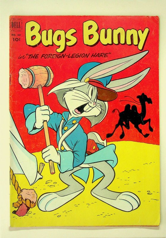 Grade: 1.8 GD-This is a comic of Four Color #407 - Bugs Bunny in "The Foreign-Legion Hare" published by Dell Comics in Jun.-Jul., 1952. The grade is probably at least a Good- but I will leave that up to the buyer to determine from the scans.The pictures are of the actual copy being auctioned. The pages are complete and intact. The comic book has been stored bagged and boarded in a climate controlled environment in a smoke free home.If you would like more information, please feel free to ask. Please check out our other listings for more interesting items. I combine shipping whenever possible. All items are well packed and sent by First Class mail.New shipping prices: Buy any number of non-CGC graded comics and the First Class Package (or better) shipping all of them together is one flat fee of $5.99! Buy any CGC graded comic, pay the Priority Mail rate and all non-CGC graded comics bought and sent in the same package are shipped for no additional charges.