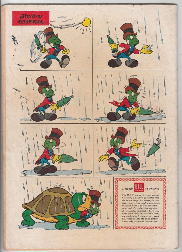 Four Color #701 - Walt Disney's Jiminy Cricket APPEARANCE - Grandma Duck and Guss Goose KEY NUMBER - Jiminy Cricket Number One This book has deep rich color and decent eye-appeal with creases and dirt smudges on t ... Read More