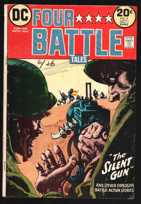 Four Star Battle Tales #4-1973-DC-machine gun cover-Joe Kubert-Russ Heath -Machine Gun cover -Story art by Joe Kubert-Mort Drucker & Russ heath Title: Four Star Battle Tales Issue: 44 Grade: VG SKU: LI-135-111