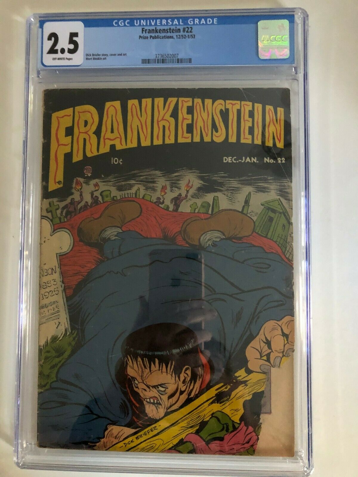 FRANKENSTEIN #22 2.5 OFF-WHITE 12/53-1/53 PRIZE PUB. / DICK BRIEFER ART-CVR