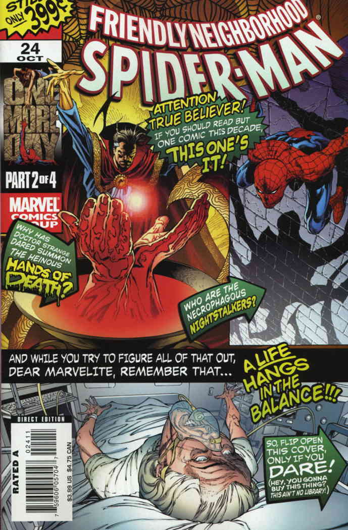 Item: Friendly Neighborhood Spider-Man #24 | Publisher: Marvel | Cover Date: November 2007 | Writer: J. Michael Straczynski, Jonathan Couper-Smartt, Mike Fichera, Peter Sanderson, Tom Defalco | Artist: Joe Quesada, Ron Frenz | Cover Artist: Joe Quesada | Appearances: Dr. Strange | Storylines: One More Day, Part 2; The Other Side of Darkness | Notes: Includes back-up story originally from Amazing Spider-Man #259; Includes layout art by Joe Quesada | With Economy shipping, each additional comic ships for just 50 cents more to customers in the USA. This listing contains a stock photo and information from ComicBase™ and © Human Computing. The stock photo is for reference only. If you would like to see a photo of the actual item, please message us prior to purchasing.Seller Information
