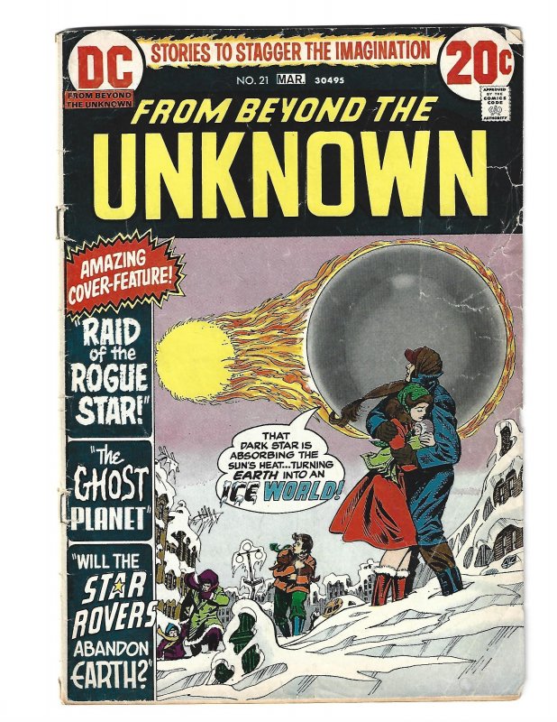 From Beyond the Unknown #21 (1973) . I have graded the comic book at GOOD with the following defects: Light stress marks along the spine. Tears along the right edge. The corners are rounded. Folds in the upper and lower right corners. Wrinkles through out the cover. Yellowing of the pages.Seller Information