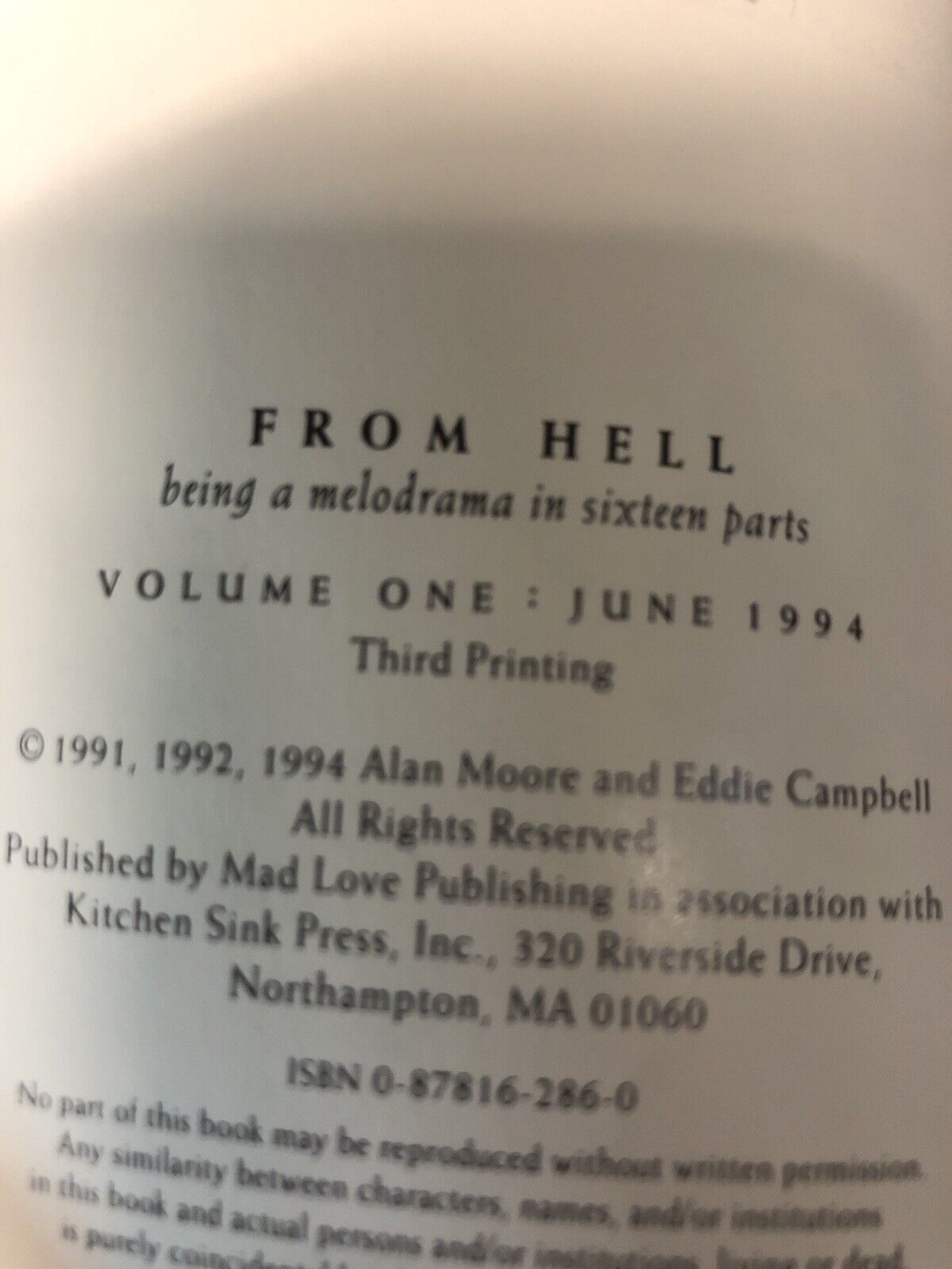 From Hell (1994) #1-6 (VF/NM) Set Printings: 1st: #5,6 2nd:#2,3,4 3rd:#1