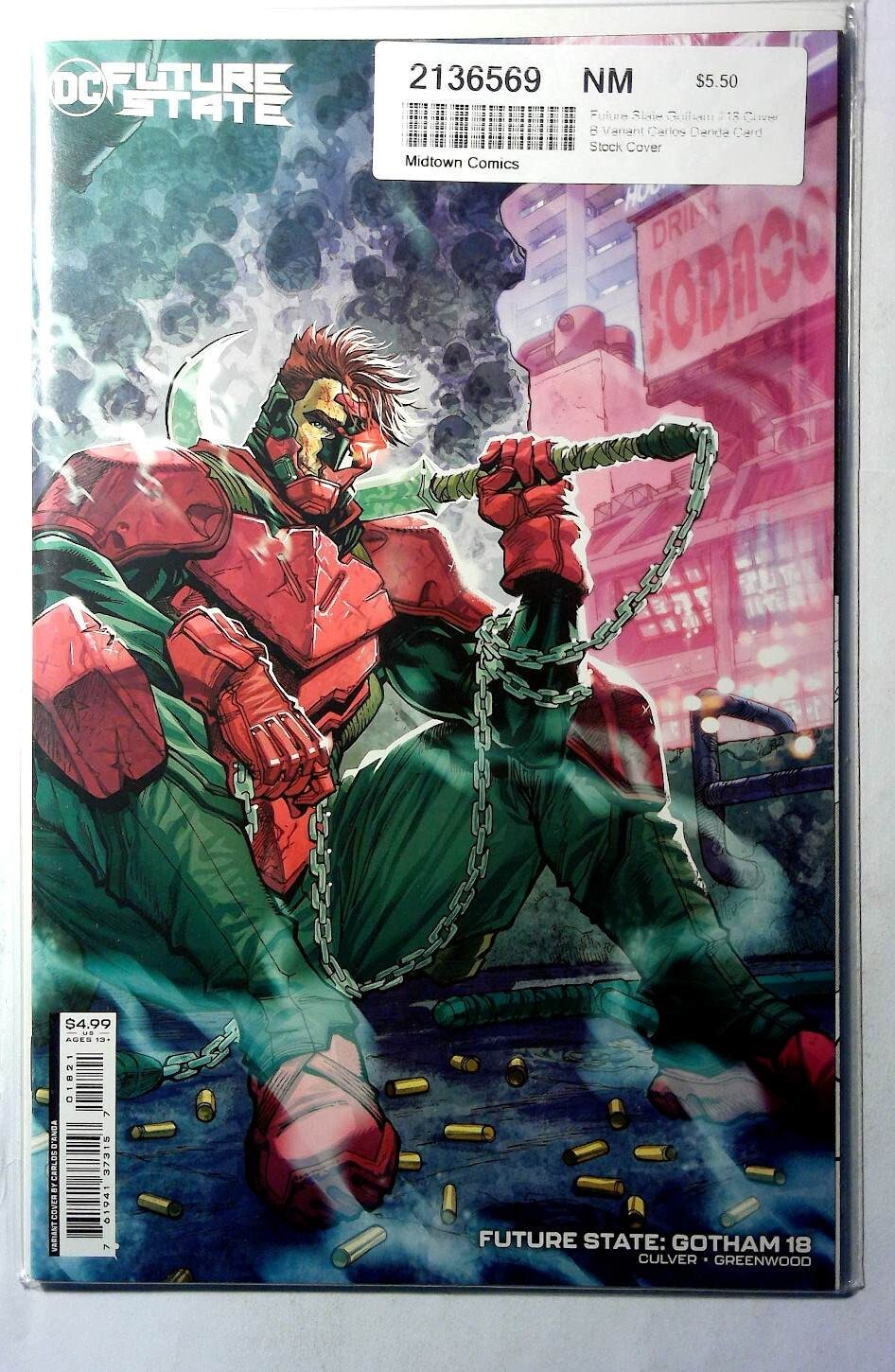 View All ListingsSee FeedbackAdd to Favorite SellersDESCRIPTIONFuture State: Gotham #18 B DC Comics 2022 9.4 NM Near Mint Condition Modern Age Comic Book Var Matteo Scalera 1st PrintingFuture State: Gotham #18 Variant Cover (2022) Written by Dennis Culver. Art by Geoffo. Cover by Carlos D'Anda. FINAL ISSUE! It's the last Batman standing versus Gotham's greatest threat! Who will ultimately win the war of the Batmen? And what will be left of the city when it's all said and done? It doesn't look good for anyone. 32 pages, PC/B&W. Rated T+Increase your comic book collection and enjoy this comic book featuring stories from Dc Comics.Our newer comic books for sale are usually* high grade, unread, mostly flat, and glossy back stock. Our comics are usually unread back-issues in excellent condition. See the listing image(s) to get a better evaluation of the condition. Grading, if provided, is of our personal opinion.COMBINED SHIPPING PROMOTIONAnd to Cart and Pay shipping only once*. Flat rate shipping cost for multiple item orders.*Highest shipping rate is applied to the order. *Exclusions apply - CGC/Slabbed books ship at a higher tier so the cost is only reduced.BEST OFFER ACCEPTEDOffers are excluded from promotional discounts since they represent your requested cost for purchase. Combined shipping can be expected but may not be applied automatically if you checkout offers/items separately.SHIPPING DETAILSOrders ships out the same or next business day. The average shipping delivery time range from 2 to 7 days. Shipped using economy options which is usually USPS Ground Advantage.PAYMENT DETAILSPay with Google Pay, PayPal, PayPal Credit, debit card, or most credit cards.FREE RETURNS30 days money back guaranteed. Returns accepted and shipping will be paid by the seller.Check Out Our Other ListingsHip Store:Cosmic-King©2026 cosmic-king. All Rights Reserved.