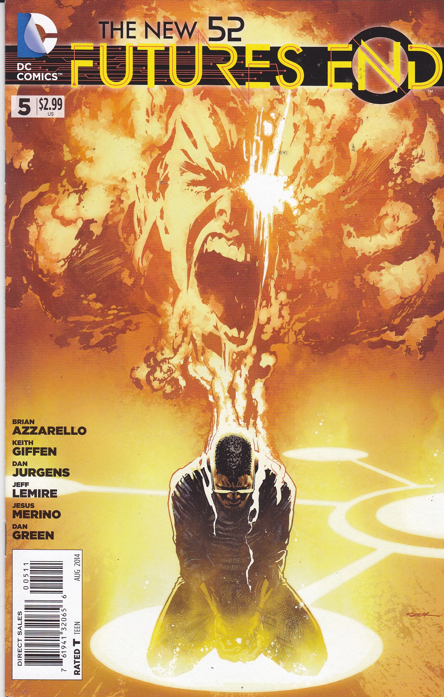 Futures End #5 by DC Comics copyright 2014. I have graded the comic book, using the Overstreet Grading Guide, at FINE/VERY FINE with the following defects: Light stress mars along the spine. The corners are rounded. There is light yellowing of the pagesSeller Information