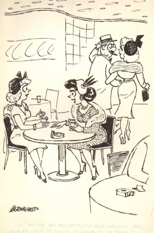 Gal Gets Engaged a Lot Gag - Humorama 1968 art by Glenn Bernhardt Size: 10" x 13"This item was uploaded by Bobby.If you have any specific questions or requests, please ask us prior to ordering and we'll get back to ... Read More
