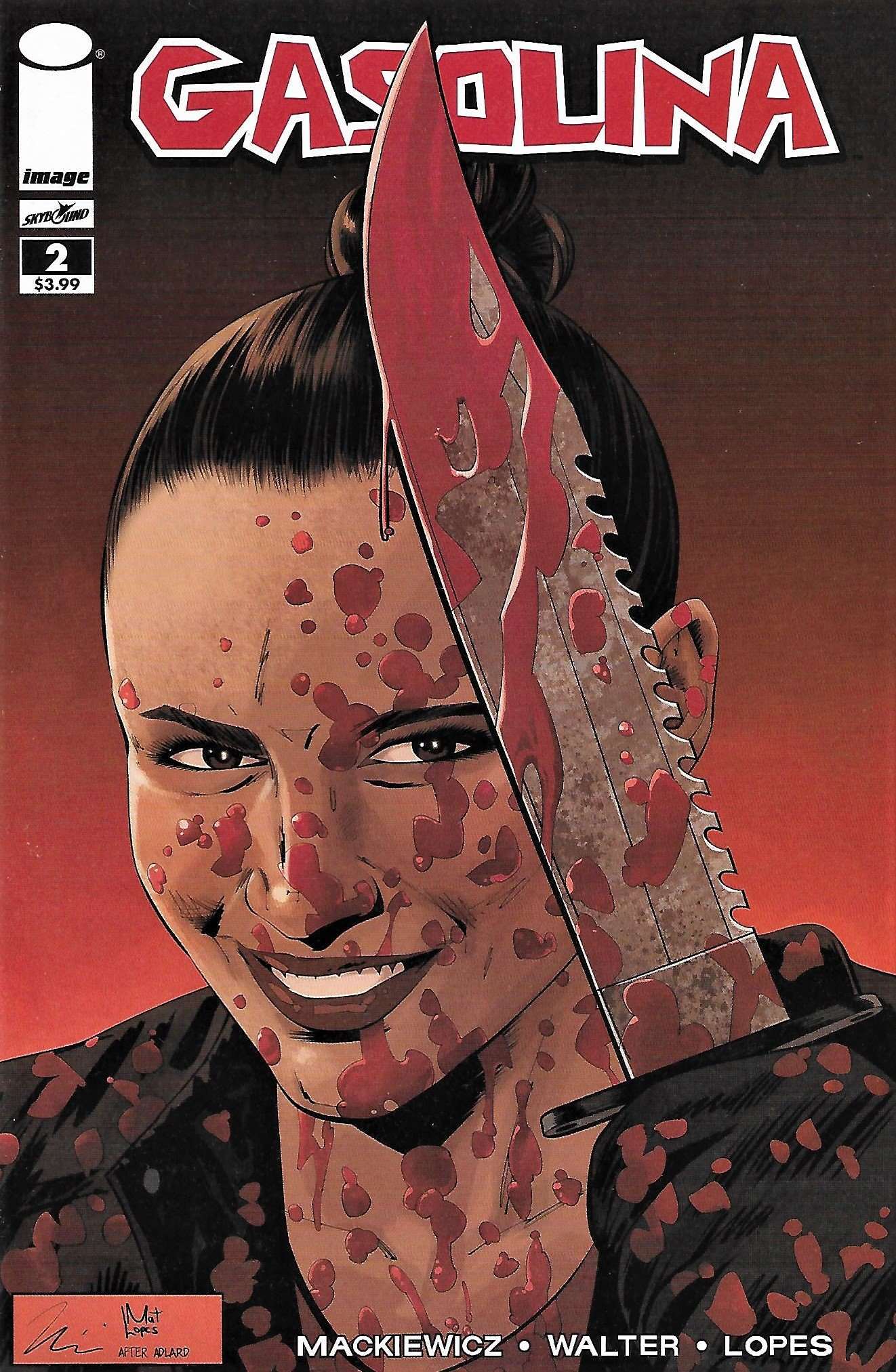 Item: Gasolina #2B | Publisher: Image | Cover Date: October 2017 | Writer: Sean Mackiewicz | Artist: Niko Walter | Cover Artist: Niko Walter | Notes: Cvr B Walking Dead #111 Tribute Var | With Economy shipping, each additional comic ships for just 50 cents more to customers in the USA. This listing contains a stock photo and information from ComicBase™ and © Human Computing. The stock photo is for reference only. If you would like to see a photo of the actual item, please message us prior to purchasing.Seller Information