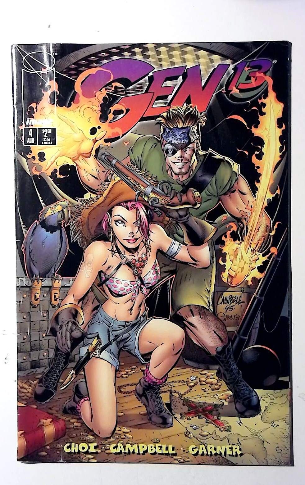 View All ListingsSee FeedbackAdd to Favorite SellersDESCRIPTIONGen 13 #4 Image Comics 1995 Ungraded Condition Modern Age Comic Book 1st PrintingCover pencils by J. Scott Campbell, inks by Alex Garner. "Tourist Trap!", script by Brandon Choi, J. Scott Campbell, and Jim Lee, pencils by J. Scott Campbell and Jim Lee, inks by Alex Garner (pages 1-12,16,18,20,21), Scott Williams (pages 13-15,17,19), Richard Friend (Assist), and JD (Assist); Fairchild finds romance! Grunge finds that his ultimate fantasy isn't quite what he'd hoped!; And the team find themselves in the middle of a battle between the Coda and a group of pirates! "Robot Ruckus" Part 2, script and art by Tom McWeeney. 36 pgs., full color.Increase your comic book collection and enjoy this comic book featuring stories from Image Comics.Our newer comic books for sale are usually* high grade, unread, mostly flat, and glossy back stock. Our comics are usually unread back-issues in excellent condition. See the listing image(s) to get a better evaluation of the condition. Grading, if provided, is of our personal opinion.COMBINED SHIPPING PROMOTIONAnd to Cart and Pay shipping only once*. Flat rate shipping cost for multiple item orders.*Highest shipping rate is applied to the order. *Exclusions apply - CGC/Slabbed books ship at a higher teir so the cost is only reduced.BEST OFFER ACCEPTEDOffers are excluded from promotional discounts since they represent your requested cost for purchase. Combined shipping can be expected but may not be applied automaticaly if you checkout offers/items separately.SHIPPING DETAILSOrders ships out the same or next business day. The average shipping delivery time range from 2 to 7 days. Shipped using economy options which is usually USPS Ground Advantage.PAYMENT DETAILSPay with Google Pay, PayPal, PayPal Credit, debit card, or most credit cards.FREE RETURNS30 days money back guaranteed. Returns accepted and shipping will be paid by the seller.Check Out Our Other ListingsHip Store:Cosmic-King©2025 cosmic-king. All Rights Reserved.