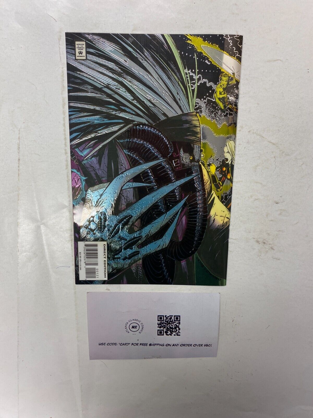 If you combine auction items with BIN (Buy It Now) items, the shipping rates divert to our combined shipping rate tables & we do not offer free shipping. * Important Stuff! ***If you combine listings that offer free shipping with listings that do not, our combined shipping rates (listed below) will be applied to the whole order, and the order will not ship for free unless all items apart of the combined order offered free shipping on their individual listings.**In Addition, if you combine multiple items, the combined shipping rates we'll use are whatever the most expensive displayed option is. Domestic Combined shipping rates:2-5 Books $6.98 6-12 Books $7.9813-20 Books $8.98 21-30 Books $9.9831-45 Books $10.98 46-65 Books $11.9866-85 Books $14.98 86-115 Books $19.98*If you have over 2 TPB/Graphic Novels in one invoice an additional charge of $1/per 3 TPB's will apply.** If your order is over 10 total listings, we'll charge an extra $1 per 10 items. So 10-19 items would be the above combined shipping rate + $1. 20-29 + $2, etc.International Shipping:International Bidders / Buyers are welcome. Please wait before paying so we can invoice you with the correct shipping charge. Feel free to request an exact amount from us prior to buying as Hip's shipping calculator can be incorrect.Condition Information:We attempt to provide an accurate grade to any single issue we sell. This grade can be found in the listing title using one of the following distinctions: GD (2.0), VG (4.0), FN (6.0), VF (8.0), NM (9.4), or a combination of two of them. On lots of books, in general, almost all of the issues we sell are going to be in AT LEAST VG condition.That being said, please look closely at the provided images of the book(s) you are buying; as you will receive exactly what is pictured.* Less Important Stuff! *We accept payments via Hip managed payments. Local Pickup is available in Atlanta.We buy comic book collections of any size, graphic novels, toys, original art, Funkos, & records! Feel free to message us for more details.Please reach out to us if ANYTHING about the item you buy isn't satisfactory before leaving less than positive feedback. We will be happy to resolve any issues and would appreciate the opportunity to do so before something less than positive is said. We're only human and are totally capable of making mistakes so please offer us the courtesy of coming to us first so we can fix whatever is/was wrong with your order.All pictures/scans are of the books you will actually be receiving & all books are sold "As Is". We DO NOT use stock photo's.Return PolicyALL Returns ARE accepted. We charge a 15% restocking fee for a non-shipping damaged OR disclosed defect return. Meaning, if you'd like to return a book that arrived safely as pictured with no additional or undisclosed defects, that's when the restocking fee is assessed. We reimburse original shipping if an item is returned because it arrives damaged or with an undisclosed defect. We do not reimburse original shipping if an item is returned "just because." We do not reimburse return postage in either scenario.Seller Information
