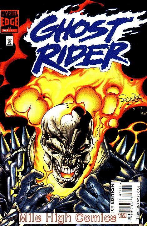 Please note: this is only one of the many thousands of back issue comics, magazines, comics trade paperbacks, and comics hardback collections that we list for sale on Hip. We stock over eight million comics and books in our Denver warehouse, and our gigantic 35,000 square foot Central Denver Mega-Store. Please enjoy shopping! In addition to our low prices, you can also combine an unlimited number of comics (up to 20 comics) and books into a single order for only a $6.95 shipping charge for delivery anywhere in the USA, and $25.00 shipping on most International orders. An important note: the cover photo of the item shown in this listing, is not a scan of the actual item. We sell well over one million back issue comics a year, and thus have a huge library of past scans that we utilize to illustrate the books that we are offering on Hip. Below we have listed a very detailed written description of our grading standards for this particular book. If the issue that we send you fails to meet any part of our grading criteria, we'll arrange for a full refund. The final bit of information that you need to know about us is that our Hip warehouse is closed on the weekends and holidays. We generally ship all our Hip orders Monday-Friday, and with the exception of orders arriving on Friday, we generally can ship Hip orders within 48 hours. Happy Collecting! Chuck Rozanski, President - Mile High Comics, Inc. GHOST RIDER (Series Began 1990) (MARVEL) Issue #71 comics in Very Fine condition. Published by Marvel .Very Fine - An excellent copy with outstanding eye appeal. Sharp, bright and clean with supple pages. Cover is relatively flat with almost no surface wear. Cover inks are generally bright with moderate to high reflectivity. Staples may show some discoloration. Spine may have a couple stress lines and is almost completely flat. A barely unnoticeable 1/4 inch crease is acceptable. Pages and covers can be yellowish/tarnish (at the least, but not brown and will usually be off-white to white).We list over 200,000 items in our Hip Store. Shipping costs apply only to the first item. All additional items in the same order ship for free!The image in this listing is from a random copy of this product that we have had in stock recently. It probably will not be the item we send you, nor even representative of the grade of this item, but is meant to help you determine if this is the item you want.Seller Information