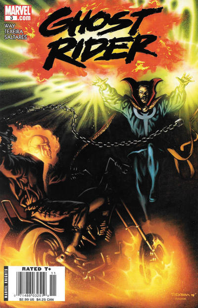 Item: Ghost Rider (7th Series) #3 (Newsstand) | Publisher: Marvel | Cover Date: November 2006 | Writer: Daniel Way | Artist: Javier Saltares | Cover Artist: Mark Texeira | Storylines: Vicious Cycle, Part 3 | Notes: Dr. Strange appearance; newsstand edition | With Economy shipping, each additional comic ships for just 50 cents more to customers in the USA. This listing contains a stock photo and information from ComicBase™ and © Human Computing. The stock photo is for reference only. If you would like to see a photo of the actual item, please message us prior to purchasing.Seller Information