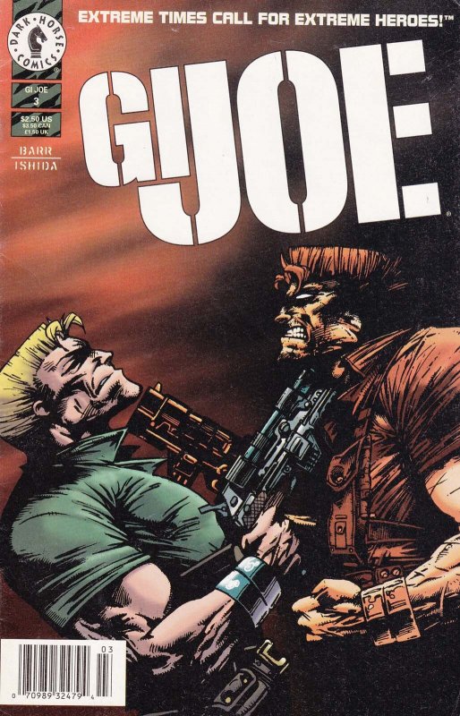 Item: GI Joe (Vol. 2) #3 (Newsstand) | Publisher: Dark Horse | Cover Date: August 1996 | Writer: Mike W. Barr | Artist: Tatsuya Ishida | Cover Artist: Simon Morse | Notes: newsstand edition | With Economy shipping, each additional comic ships for just 50 cents more to customers in the USA. This listing contains a stock photo and information from ComicBase™ and © Human Computing. The stock photo is for reference only. If you would like to see a photo of the actual item, please message us prior to purchasing.Seller Information