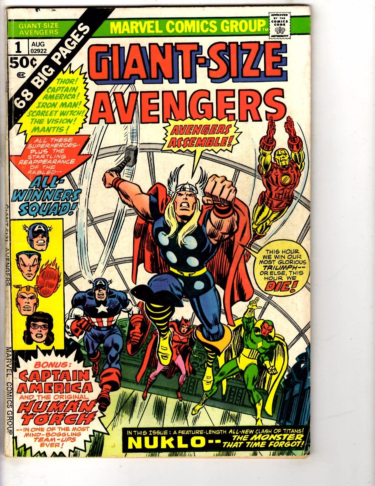 Giant Size Avengers # 1 VG Marvel Comic Book Hulk Thor Iron Man Captain Ame J275