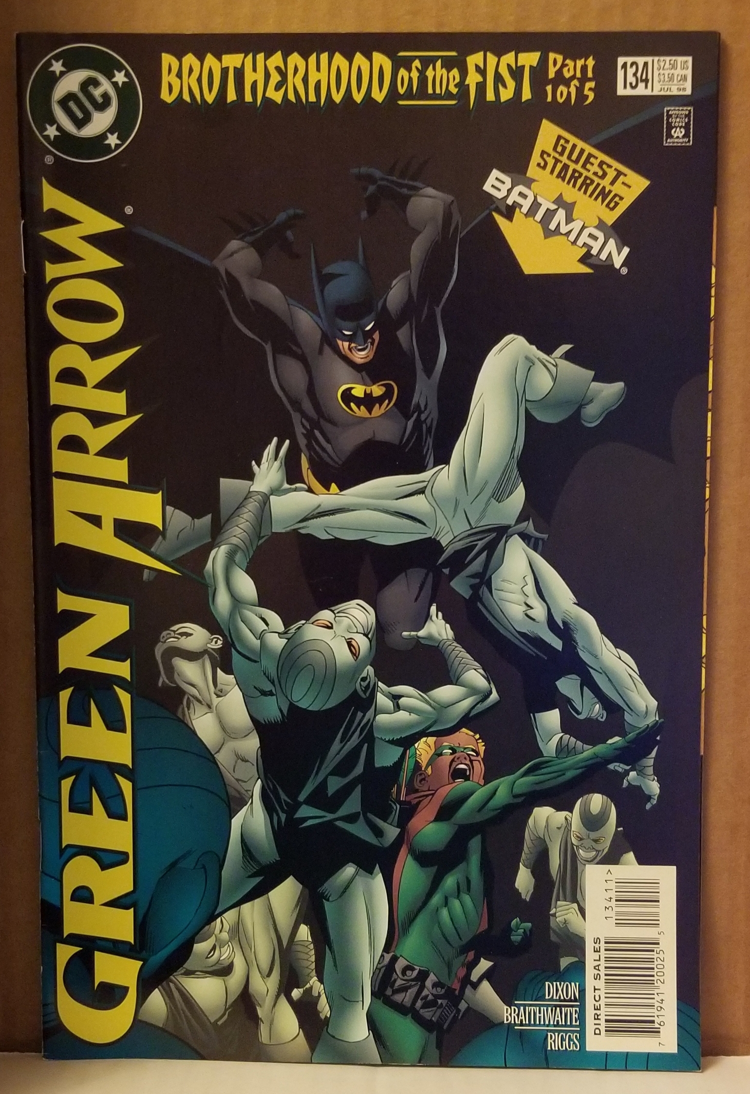 Green Arrow #134 by DC Comics copyright 1998. I have graded the comic book, using the Overstreet Grading Guide, at FINE/VERY FINE with the following defects: Light stress marks along the spine. The corners are rounded. There is light yellowing of the pages.Seller Information