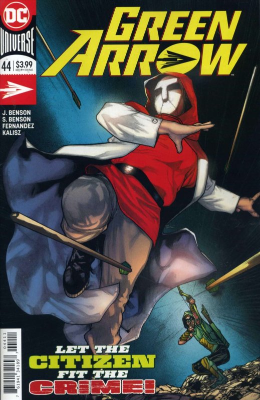 Item: Green Arrow (6th Series) #44 | Publisher: DC | Cover Date: November 2018 | Writer: Julie Benson | Artist: Javi Fernandez | Cover Artist: Alex Maleev | Storylines: Citizen’s Arrest, Part 2; Model Citizen | With Economy shipping, each additional comic ships for just 50 cents more to customers in the USA. This listing contains a stock photo and information from ComicBase™ and © Human Computing. The stock photo is for reference only. If you would like to see a photo of the actual item, please message us prior to purchasing.Seller Information