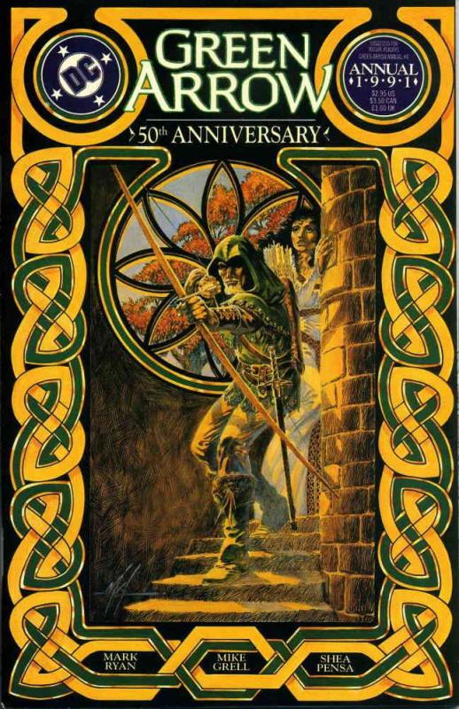 Item: Green Arrow Annual #4 | Publisher: DC | Cover Date: 1991 | Writer: Mark Ryan, Mike Grell | Artist: Shea Anton Pensa | Cover Artist: Mike Grell | Storylines: The Black Alchemist | Notes: Robin Hood story; 50th ... Read More