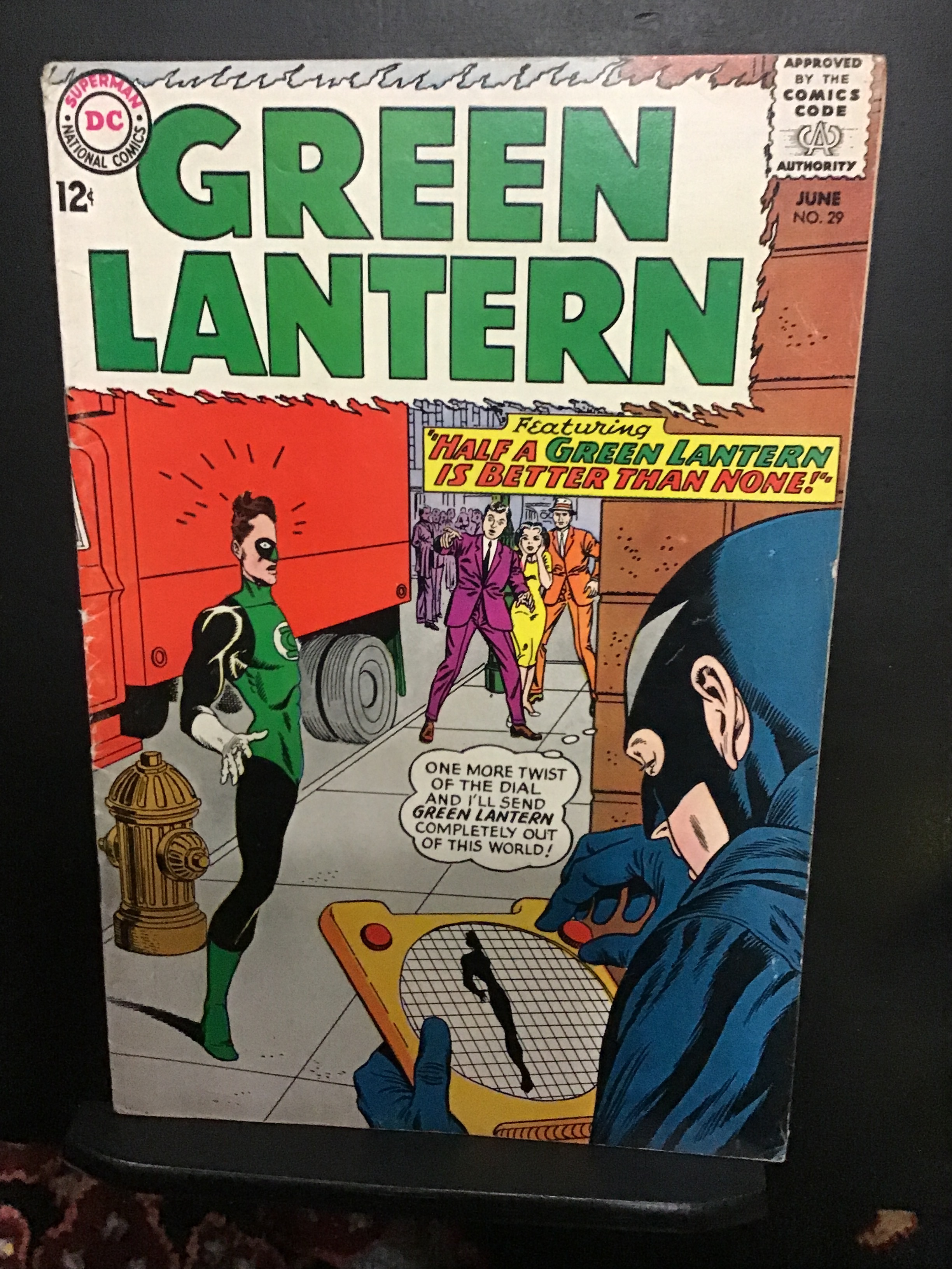 Green Lantern #29 (1964) this book has deep rich color and very nice eye-appeal on this all time classic Green Lantern cover. With-cream pages and light-cream/cream inside covers With wear appropriate grade. The book is well attached at the spine in the centerfold.There Is light where at the spine side of the front cover with a very small split at the top of the spine.. We have adjusted the grade accordinglySeller Information