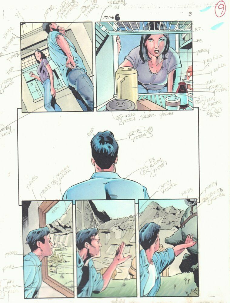 Green Lantern Annual #6 p.8 Color Guide Art - Kyle Rayner Goes into Painting - 1997Jeff Johnson pencillerJohn Lowe inkerJohn Kalisz painter"This is a B&W STAT photo copy that the colorist, John Kalisz, painted over to create the published page. This is color art only, the original pencils and inks aren't on here." 9.5" x 11" with some moderate wear along the edges.This item was uploaded by Bobby.If you have any specific questions or requests, please ask us prior to ordering and we'll get back to you as soon as we can. If there are any problems with your order whatsoever, please message us before leaving feedback and we'll be happy to work with you to fix the situation!We ship worldwide, combine purchases, and charge exact shipping. The price may vary based on size, weight, and location. If you are automatically overcharged for shipping, message us and we'll be happy to revise the invoice or refund you the excess amount. If you have any questions regarding shipping, please message us.International Buyers - Please Note: Import duties, taxes, and charges are not included in the item price or shipping cost. These charges are the buyer's responsibility. Please check with your country's customs office to determine what these additional costs will be prior to bidding or buying. Payment can be made by PayPal and credit cards directly. 120,000+ items in total in my Hip store! Frequently Asked Questions: When are your operation hours?Our in office hours are Monday - Friday, 11 am - 8 pm. We are not open on weekends, so if you send us a request on Friday evening we won't get back to you until Monday afternoon. Please don't take it as us ignoring you! We will work on your request Monday and get back to you as soon as we can. Also, if you order from us on a Friday evening or Saturday morning we won't start processing your order until we open on Monday. That means on Monday it will be pulled and prepped for shipping, then picked up by the postman on Tuesday morning.When will you ship my item? The tracking hasn't moved.We realize you're eager to get your item, so if the tracking hasn't moved in a few days please don't be concerned. We give the postman a lot of packages daily, sometimes as many as 100, so he does not scan each item for us upon pickup as he says it would be too time consuming for him to do so. If you get a tracking number from us, that almost always means your item was picked up by the postman the next business day. The USPS is also imperfect. There are times when the tracking won't even show movement until it's in your area's regional distribution center. This is normal in our experience. Is this original artwork? Yes! I am a professional comic book art dealer with 20+ years experience. The image pictured is one of a kind original artwork unless otherwise described. Can you issue a COA? We can, upon request. Please make sure you leave us a note while checking out and shoot us a message immediately after requesting one, just to be sure. What is your base shipping for art? $10 for Domestic, International varies depending on location. Please use Hip's shipping calculator for specifics. How do you ship comics?We ship in rigid cardboard mailers to protect your comic book from the worst the mail system has to offer. Price varies based on the number of books you purchase, but we try to keep costs as low as we can and charge exact shipping. If it looks unusually high to you please send us a message and we'll be happy to double check for you. What is your base shipping for CGC comics? Domestic for CGCs are $10 for the first and $5 for each additional one you add. Do you combine shipping? Yes, of like items. Such as: several comics can fit in one cardboard mailer, as can more than one record. Multiple art pages can easily be combined because they are light and thin. Where combined shipping differs is with size and weight. For instance, two statues require a much bigger box. Same goes for CGCs, as the package gets bigger and heavier as you go. Do you ship well? I've had some bad experiences... You needn't worry; we are professionals who value your business and want your item to arrive safely as much as you do. I have been collecting for over 30 years. I send out items the way I would like to receive them. The tracking says my item is "OUT FOR DELIVERY" in New Jersey. Why is that?If the tracking indicates that the item is "OUT FOR DELIVERY" in NJ don't worry, it's just what the tracking says when it's carried over from the postman to the sorting center. This is normal for our Post Office and will not impact you receiving your item in a timely matter.Have these CGCs had any previous owners? No. I have personally sent in almost all of these to CGC and had them returned to me, offering them fresh to the market for the 1st time. I changed my mind after successfully winning the auction or fixed price listing, will you cancel the transaction? Please only bid or hit BUY IT NOW if you are willing to follow through and pay for the item, we will not cancel the transaction. As a seller, Hip penalizes us every time we cancel an order, so it is detrimental to our business to do so. Therefore if you will not pay, then you'll have to let Hip cycle this to an "unpaid item" and accept whatever action Hip deems necessary. 120,000+ items in total in my Hip store! MEET OUR STAFF: Pictured left to right, my employees: Bobby, Justin, Mario V., Connelly, Mario B., Alejandro, Sumie, and Anthony.AS SEEN ON TV : I have been buying and selling artwork and comics for about 20 years. If you are new to buying art or comics feel free to ask any questions that you may have. 120,000+ items in total in my Hip store! Small, Regular, and Large Portfolios available; see my Hip store!