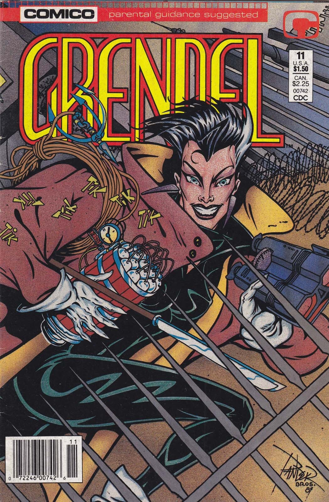 Item: Grendel (2nd Series) #11 (Newsstand) | Publisher: COMICO | Cover Date: August 1987 | Writer: Matt Wagner | Artist: Arnold Pander, Jacob Pander | Cover Artist: Arnold Pander, Jacob Pander | Appearances: Grendel (Christine Spar) | Storylines: Devil’s Rampage | Notes: Wraparound cover; newsstand edition | With Economy shipping, each additional comic ships for just 50 cents more to customers in the USA. This listing contains a stock photo and information from ComicBase™ and © Human Computing. The stock photo is for reference only. If you would like to see a photo of the actual item, please message us prior to purchasing.Seller Information