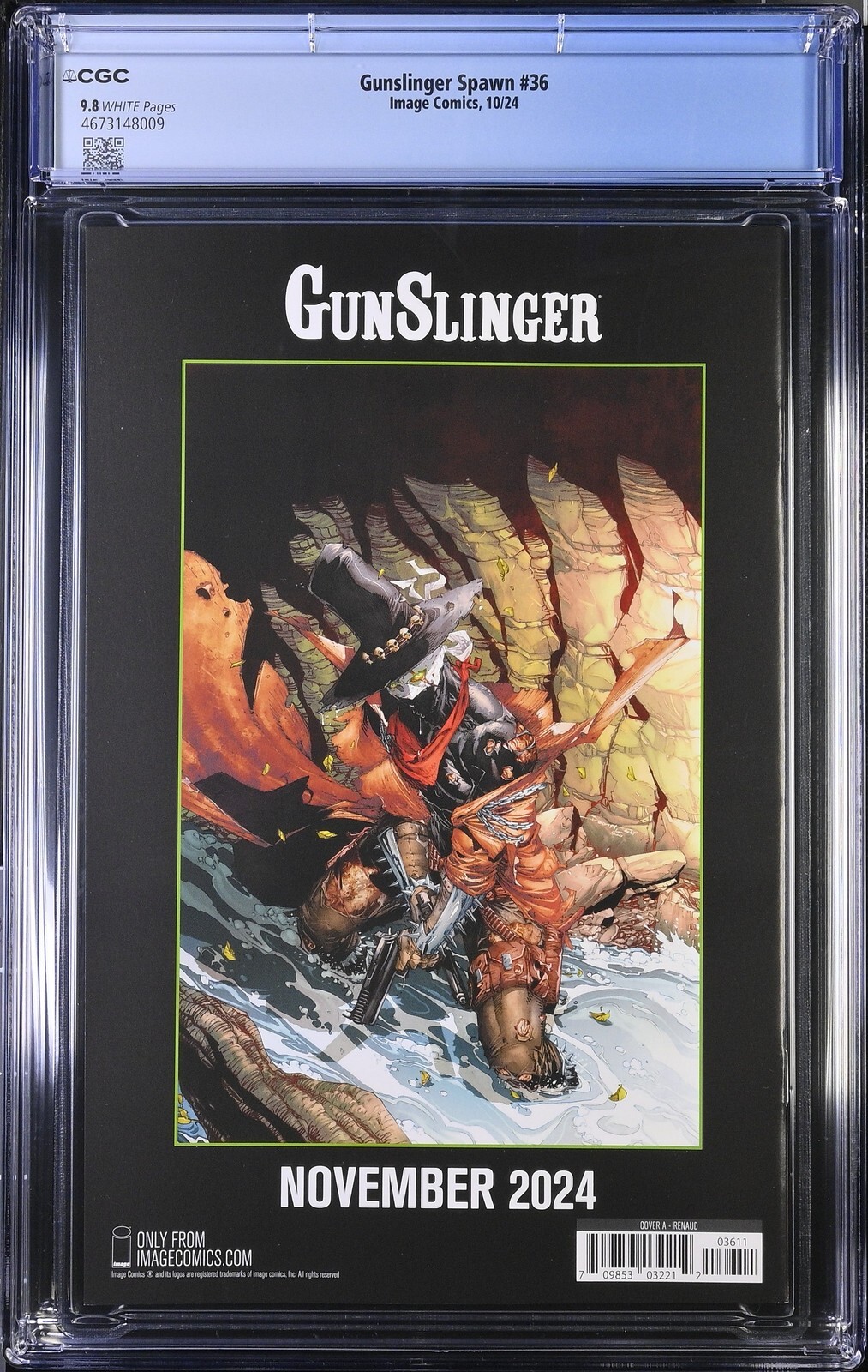 Gunslinger Spawn #36 from 10/24 offers a glimpse into the era's iconic storytelling. This issue is a must-have for collectors. Add this CGC 9.8 graded comic to your collection today!Attribute DetailsCertNumber 4673148009DisplayGrade 9.8GradeCategory ModernPageQuality WHITEArtComments Todd McFarlane story, Carlo Barberi art, Paul Renaud coverCollectibleID 363423CollectibleType CTitle Gunslinger SpawnIssue 36IssueDate 10/24Publisher Image ComicsYear 2024PopulationAtGrade 6population_9_8 6Sales History