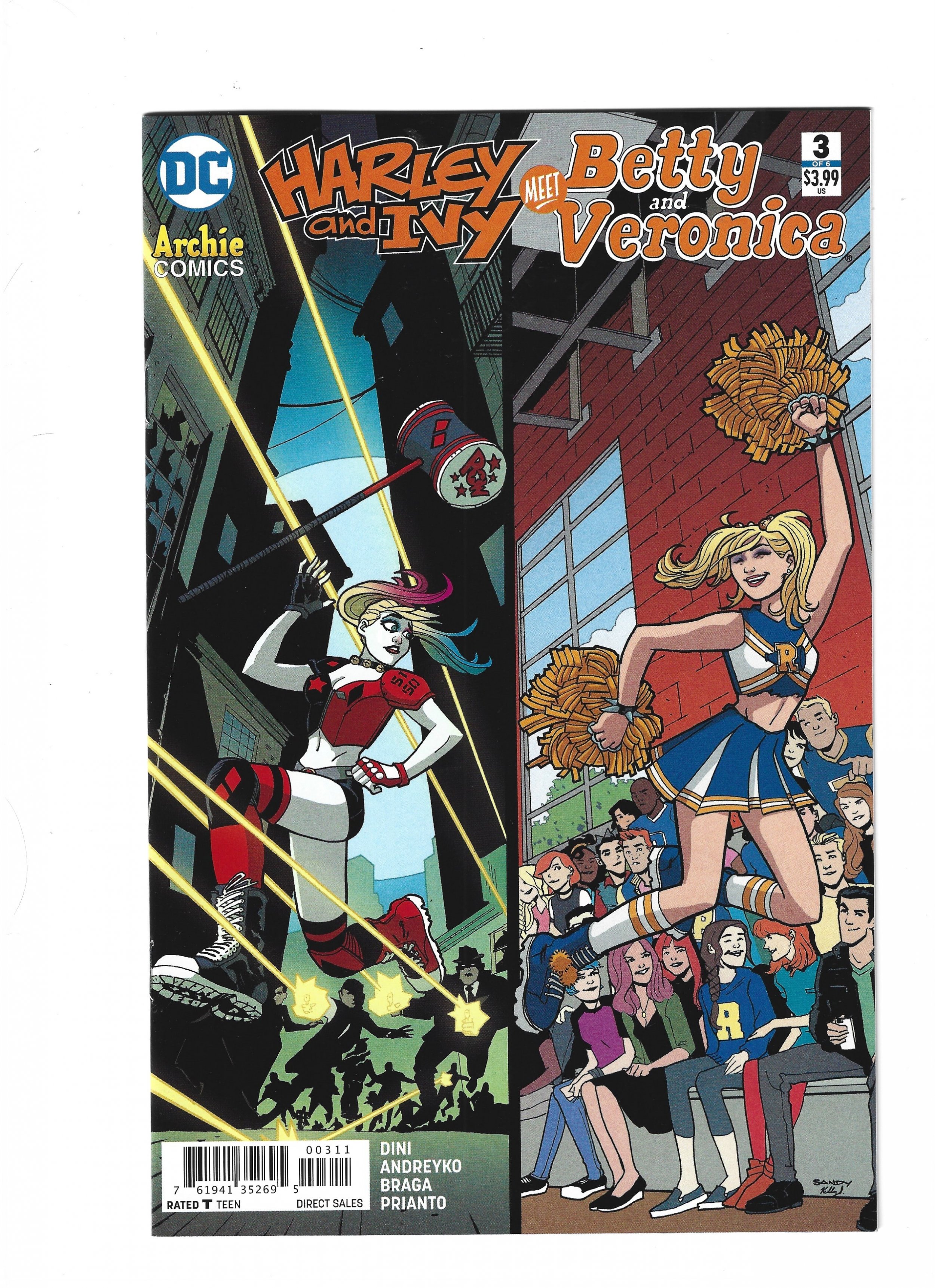Harley & Ivy Meet Betty & Veronica #3 Sandy Jarrell Cover (2018) have graded the comic books at FINE+ with the following defects: Light stress marks along the spine. The corners are rounded. There is light yellowing of the pages.Seller Information