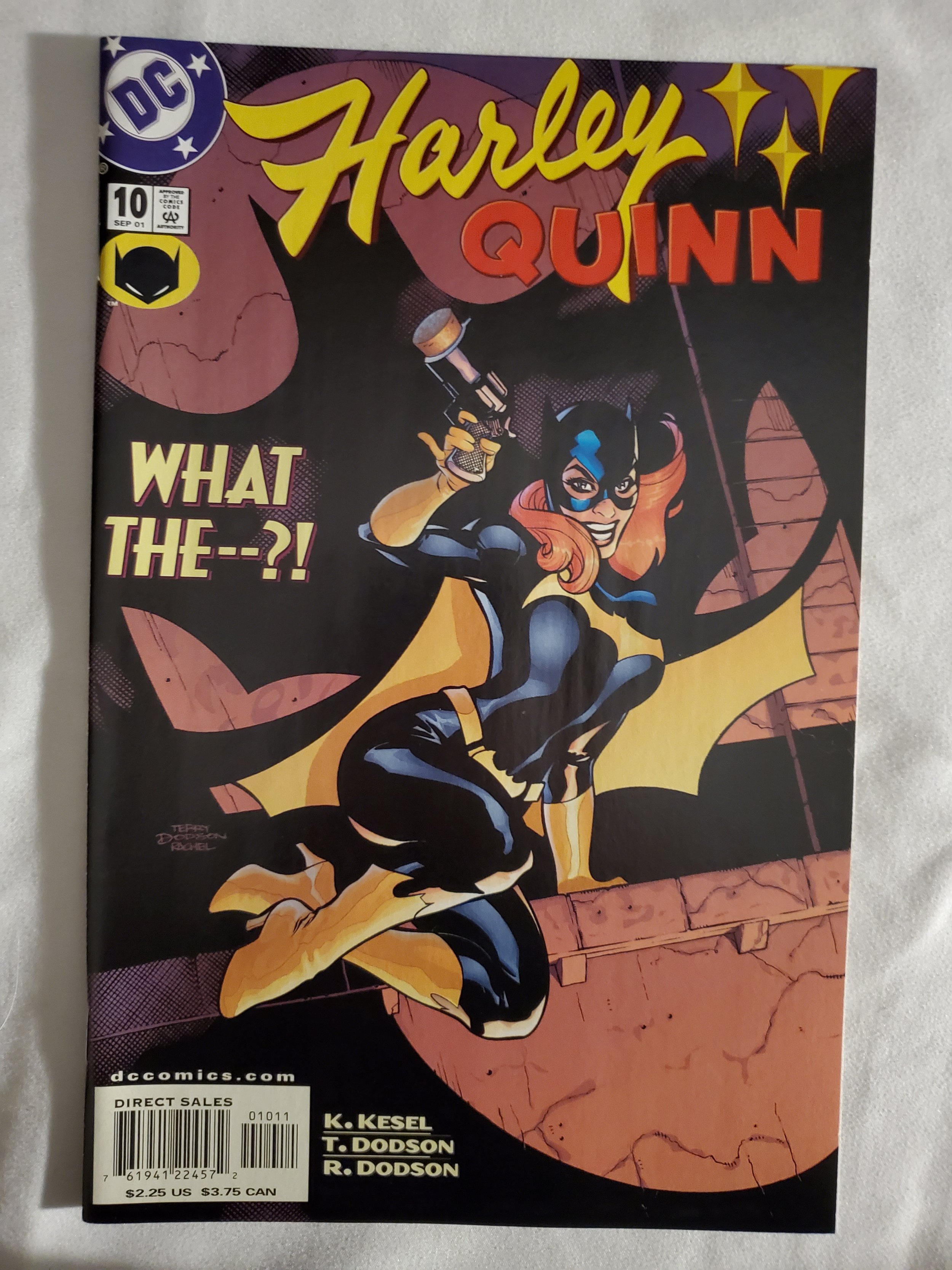 Written by karl kesel; art and cover by terry dodson and rachel dodson. Reintroducing the original, accept no substitutes, batgirl! But how can that be possible when barbara gordon, the original batgirl is wheelchair-bound? She'd certainly like to know, and so would nightwing, robin, and a certain new hero out there named ? You guessed it ? Batgirl! Meanwhile, harley's still in the clutches of killer croc; bo and surly of the stooges have a tender, defining moment; and the quinntettes get a new member: matches malone! Fc, 32 pg. Cover price $2.25.Seller Information