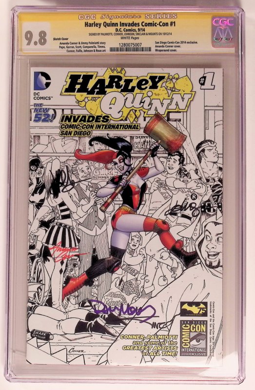 Harley Quinn Invades Comic-Con #1 (2014) CGC 9.8 Sketch CoverSan Diego Comic-Con 2014. Signed by Palmiotti, Conner, Johnson, Sinclair & Mounts